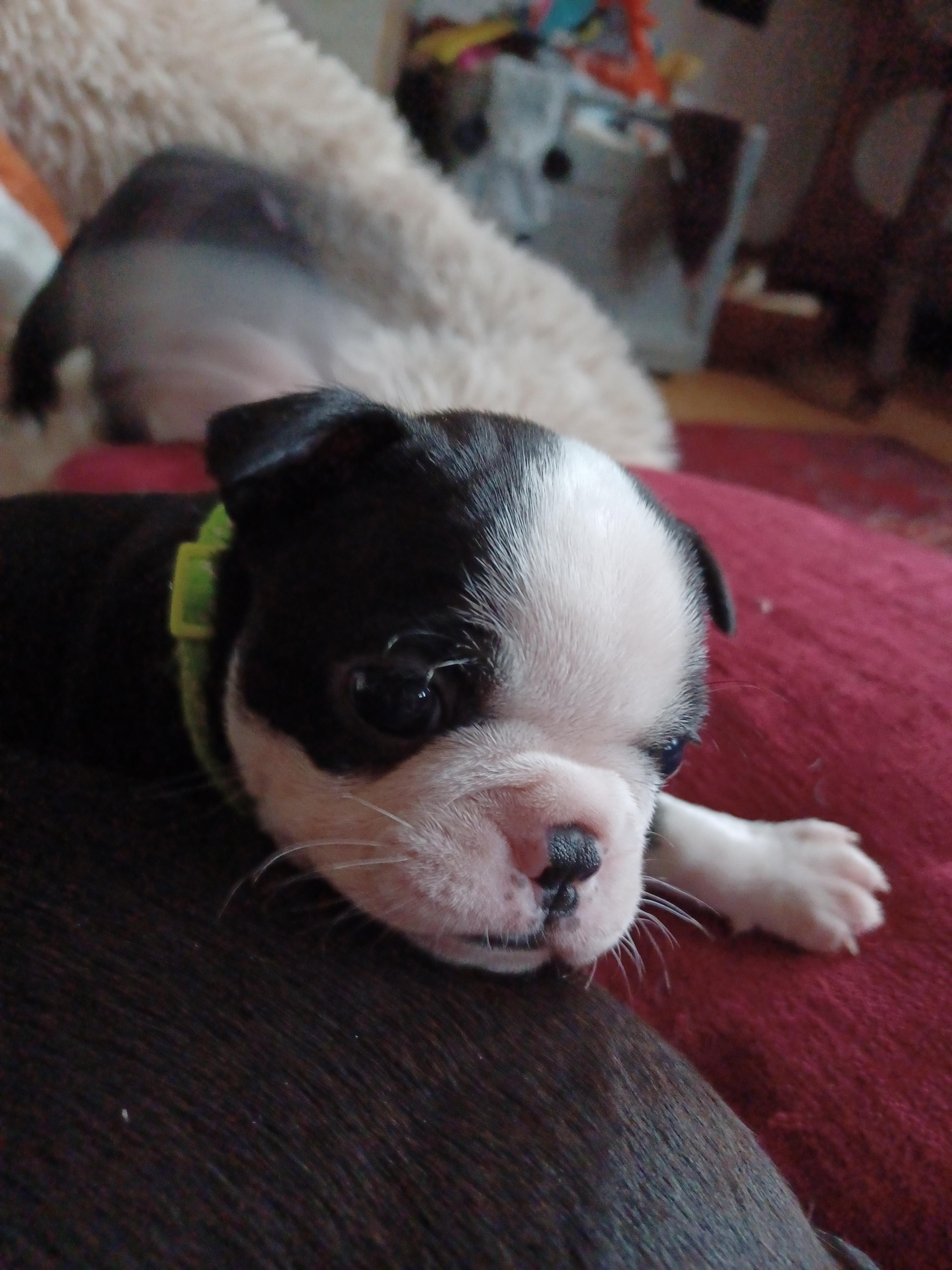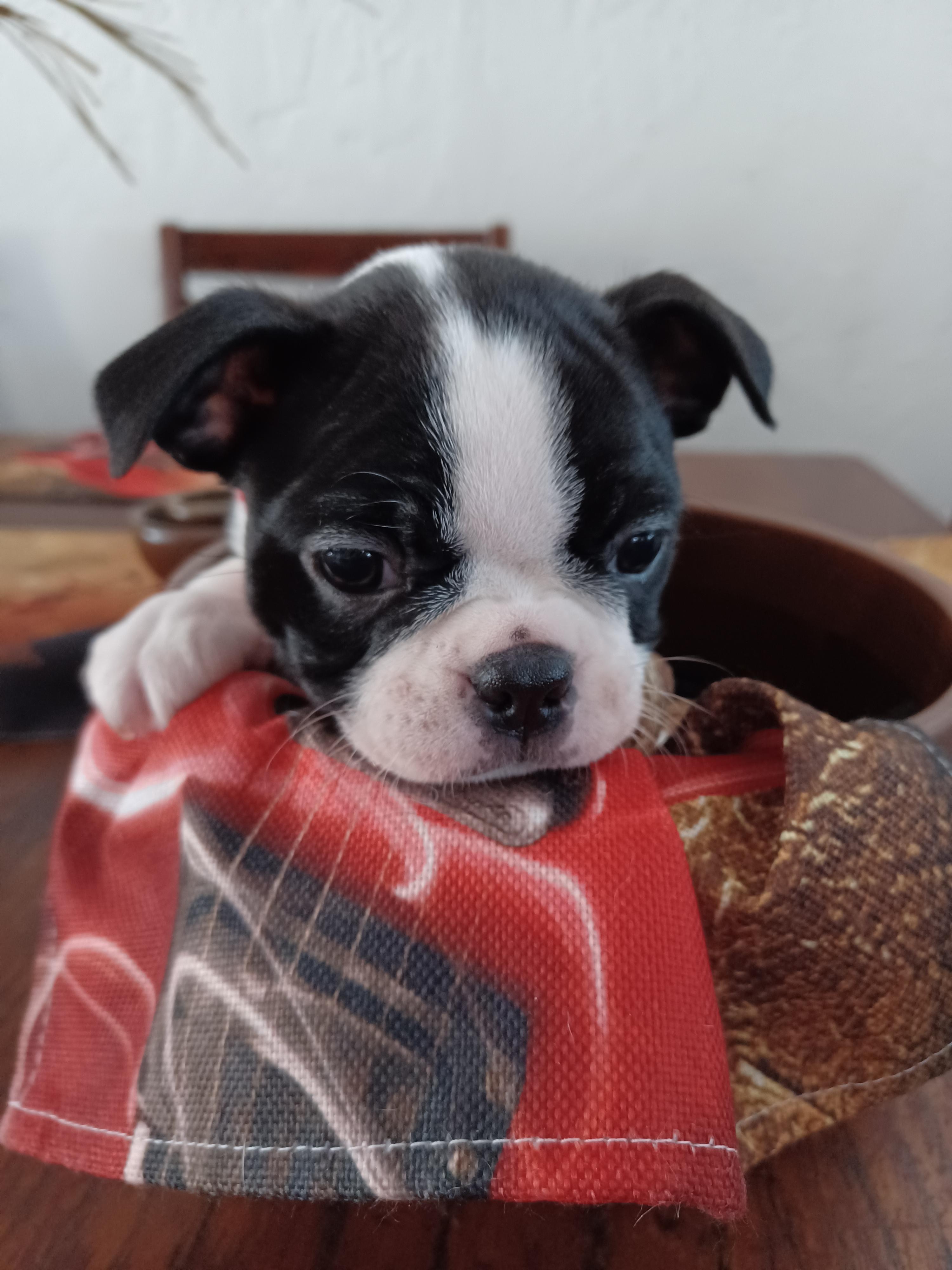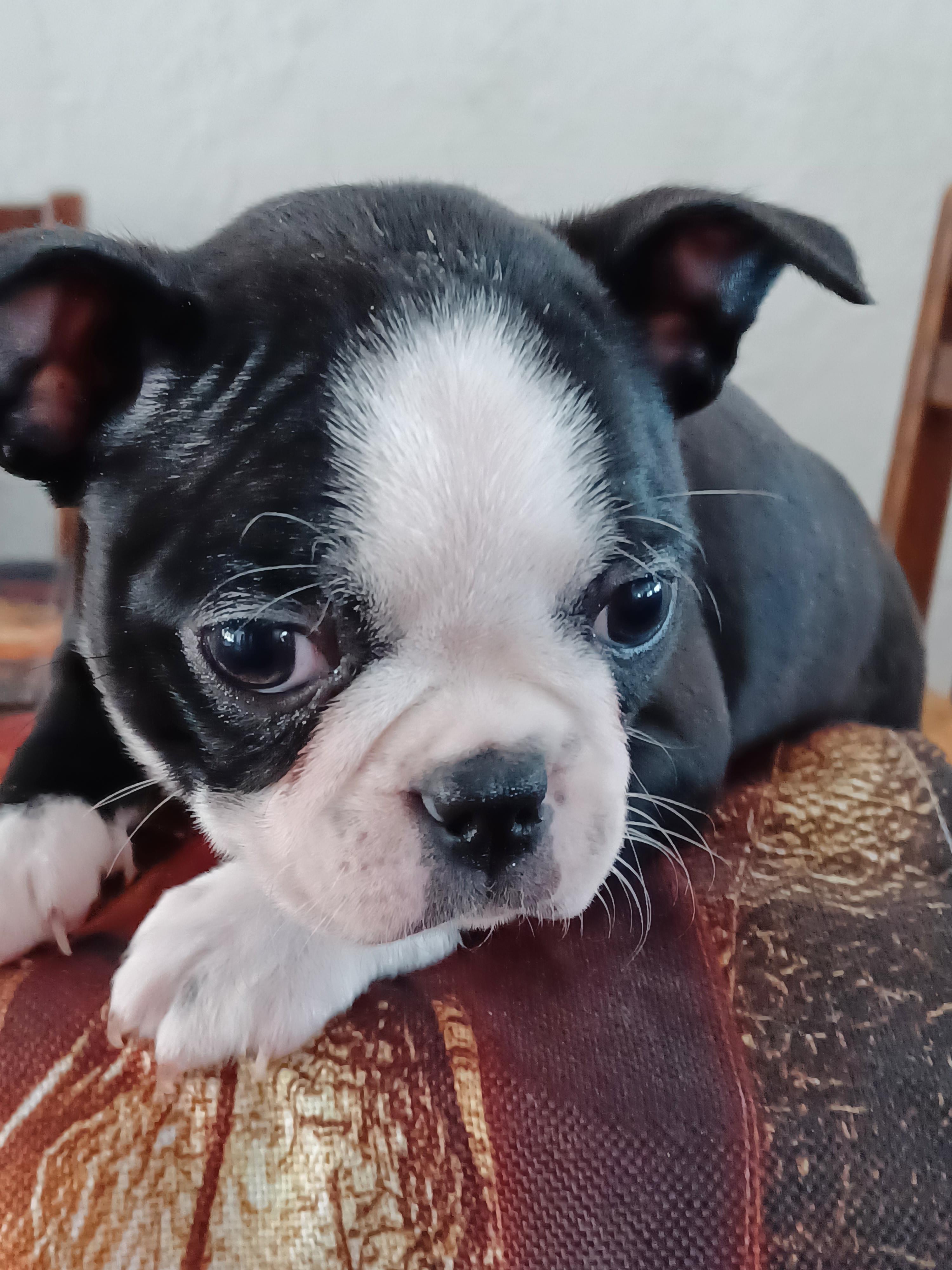 Freya is a female Boston Terrier. Carefully selected as a great representative of her breed, Fawn decided to make her part of their program. Fawn has passed Good Dog’s screening process, which involved a review of their breeding practices, environment, and the mental and physical health of their dogs.