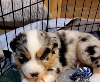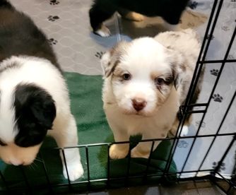 Our Australian Shepherd puppies include red merle, blue merle, black tri-color, and red tri-color. Labrador Retriever puppies include black and chocolate. Colors will vary depending on the parent dogs.