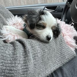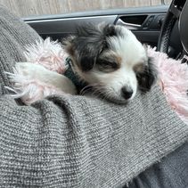 Ashley couldn't have been better! She sent us pictures and video every day of little Isla. She gave her a wonderful start to her life in a clean, healthy environment and provided many stimulating activities and toys for her. We are so happy with our Toy Australian Shepherd; Isla is bringing much joy into our lives.