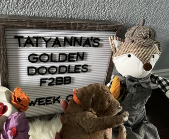 I'm Tatyanna M., the breeder behind Tatyanna’s Doodles located in Dallas, TX. Our dogs are our beloved companions. We care deeply about this breed and are proud to be responsible Goldendoodle breeders. We are a simple, family-run breeding program offering loving and loyal companions to others. We focus on quality care and health with each litter we raise.