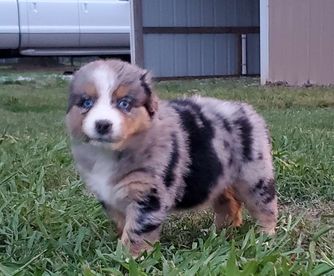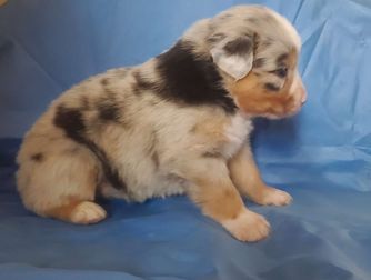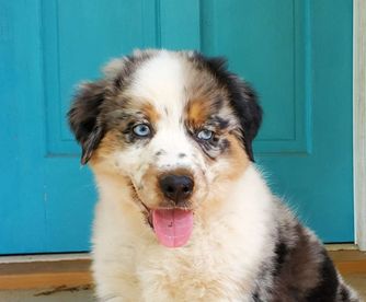 Our puppies include red merle and blue merle. Colors will vary depending on the parent dogs.