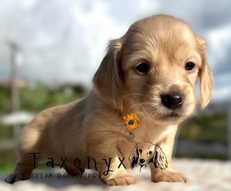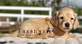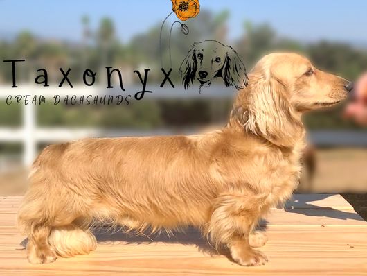 I'm Andrea C., the breeder behind Taxonyx Cream Dachshunds located in Valley Center, CA. Our dogs live as part of our family and their puppies are raised in our home. They spend their time in California sunshine, digging for gophers and resting on our couches. We are dachshund lovers first and breeders only to a few select litters of quality. All our puppies have full guarantees.