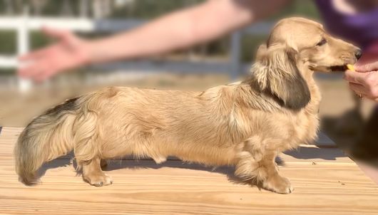 PD is a male Dachshund. Carefully selected as a great representative of his breed, Andrea decided to make him part of their program. Andrea has passed Good Dog’s screening process, which involved a review of their breeding practices, environment, and the mental and physical health of their dogs.