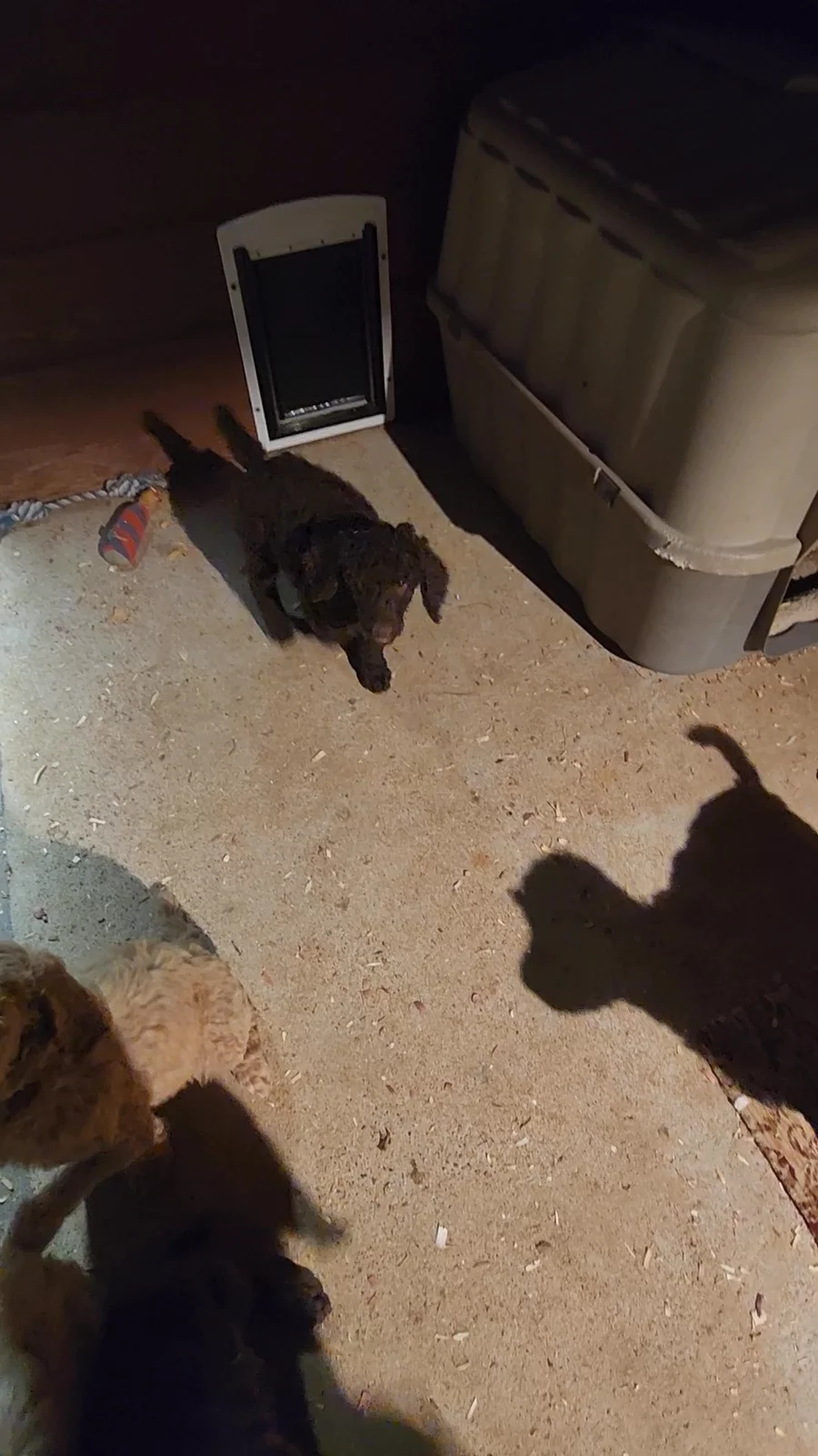 Puppies learning to use Doggy door