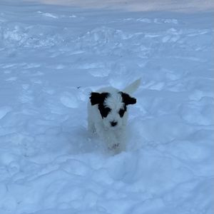 6 weeks old, doing great pottying outside and love playing in the snow!