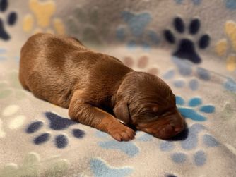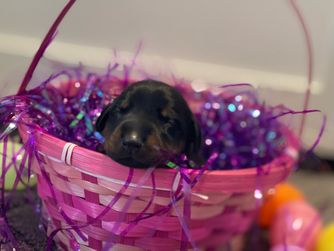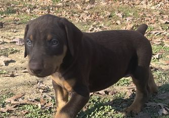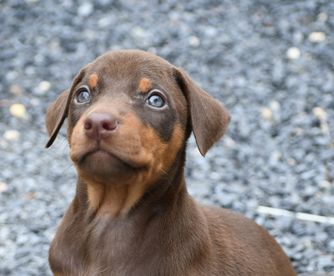 Our puppies include black and rust, blue and rust, fawn (isabella) and rust, and red and rust. Colors will vary depending on the parent dogs.