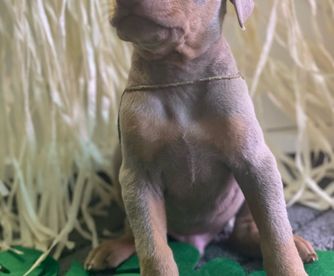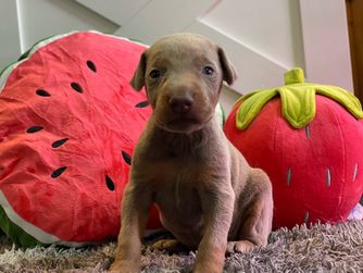 Taylor was amazing to work with! She sends weekly updates with pictures, even when requested to have additional pictures/videos. Our fawn dobie female is amazing, we love her to pieces. We were surprised by the bag full of toys, treats and everything a new puppy would want! Awesome experience with Taylor!
