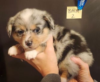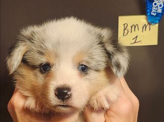 Our Miniature Australian Shepherd puppies include blue merle, black tri, red tri, and red merle. Toy Australian Shepherd puppies include black tri, blue merle, red merle, and red tri. American Corgi puppies include blue merle and white, sable merle and white, sable, and black and tan. Colors will vary depending on the parent dogs.