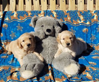 I do genetic testing that the Golden Retrievers are predisposed. They have 5 acres to run on and I also do testing. They all are raised around horses chickens cats so they're very well-rounded.
