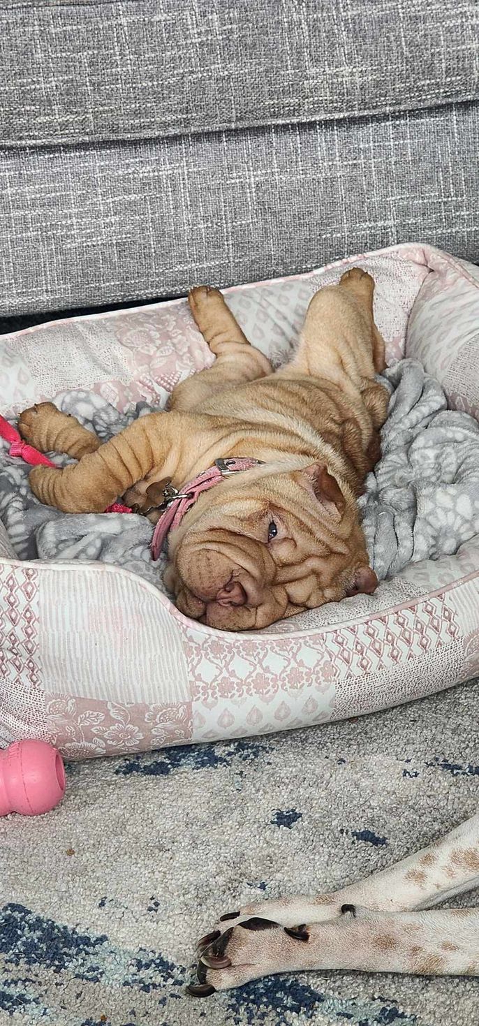 She’s the best! She answered all our questions and even though her transporter was not available she took the time to get another one (who was great as well). The shar pei puppy is adorable and so well behaved. She also send a folder with health, vaccines and lots of helpful notes.