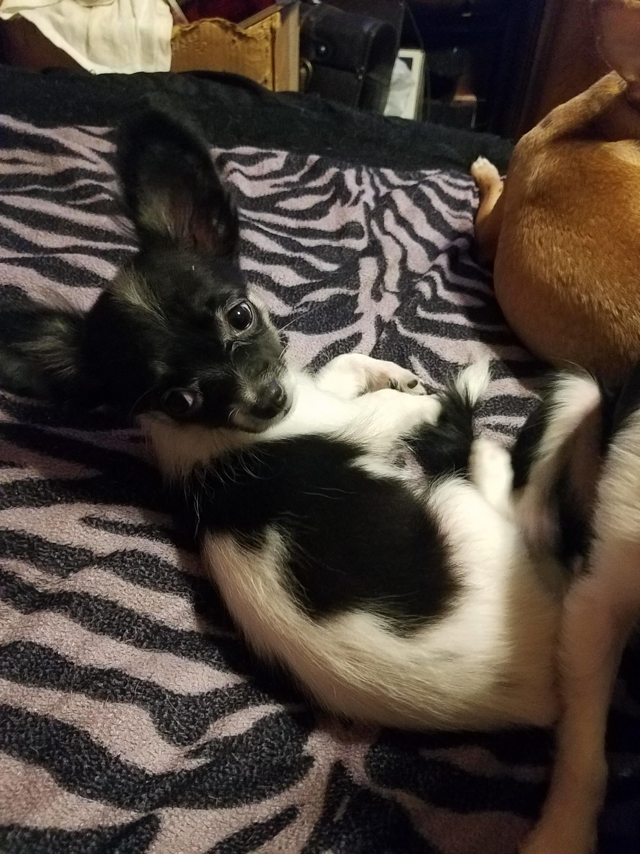 Ginger is a micro chihuahua. She loves to play and cuddle. I have other dogs that are bigger than her but she is the boss of everyone. She super sweet and loving. A great mother to babies.