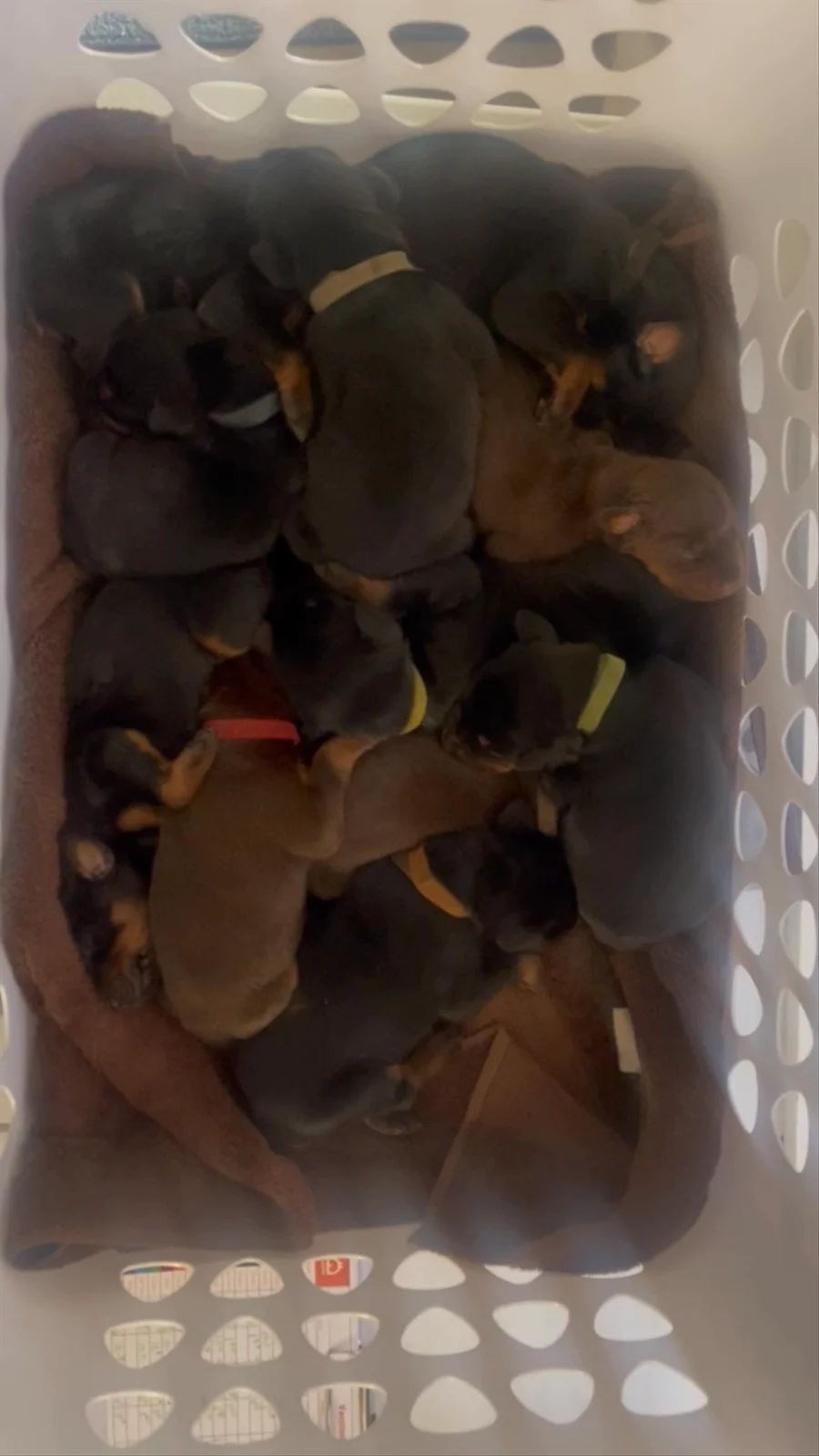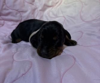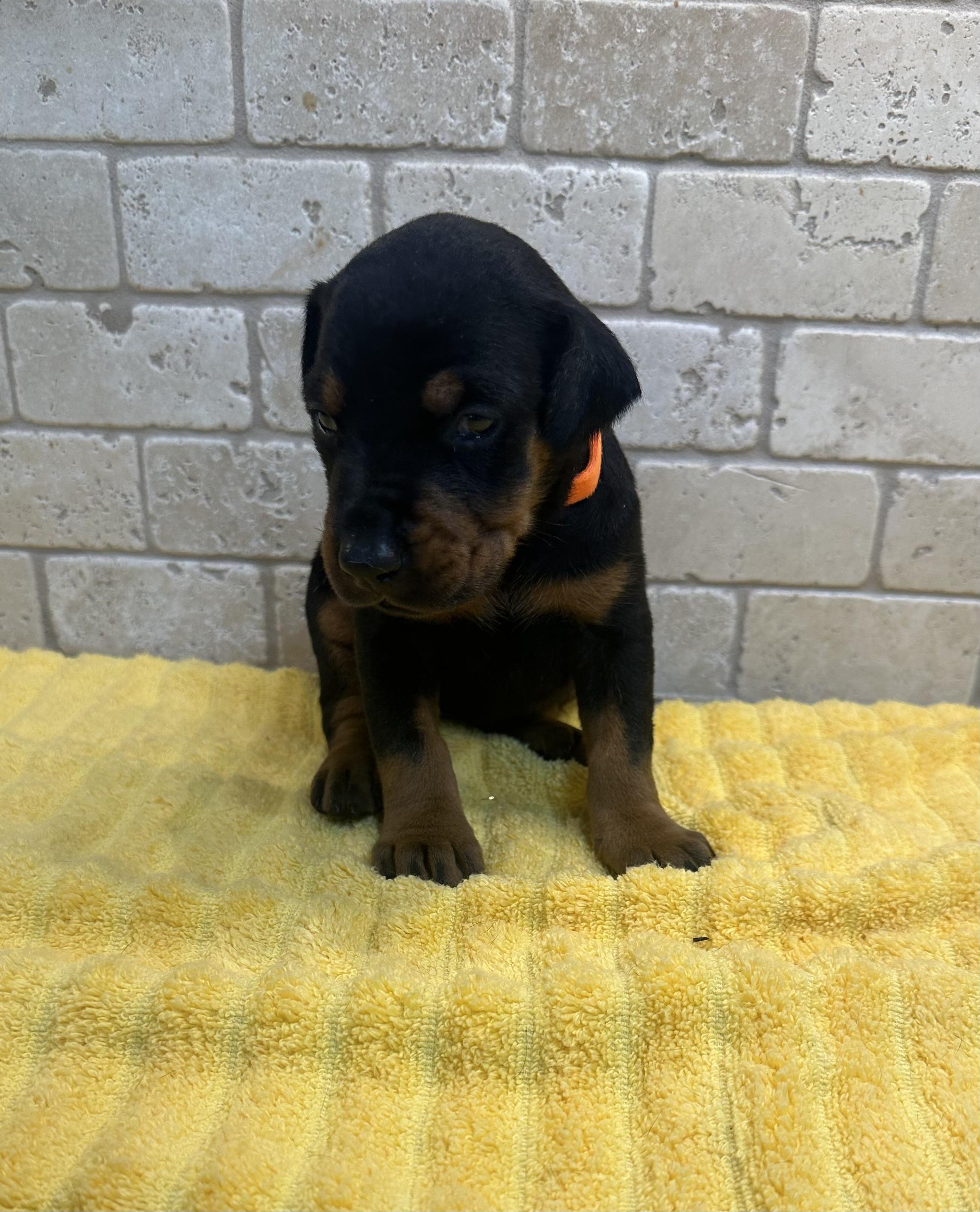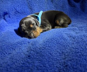 Our puppies include black and rust and red and rust. Colors will vary depending on the parent dogs.