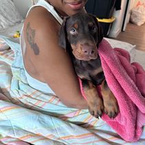 Working with Cayce was amazing she was very informative and responsive. We went to pick up our baby Nala and Cayce helped prepared us for everything that was to come she was very helpful and gave us advice and tips on how to train her. She even sent us home with a collar and a toy!! She was also very organized with all of Nalas paperwork. I highly recommend going to her if you’re thinking about getting a Doberman.