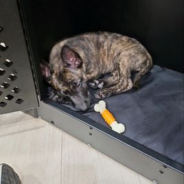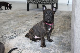 Our puppies include black brindle and gold brindle. Colors will vary depending on the parent dogs.