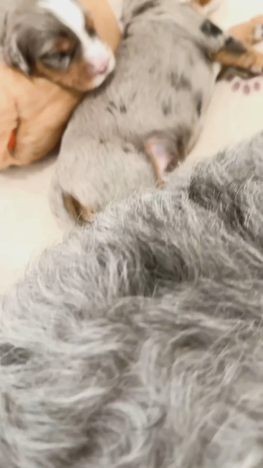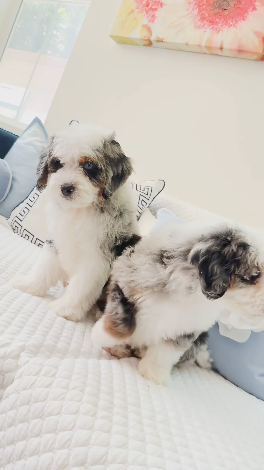 Bambi/Aurora is one of our Micro Mini moms. Aurora lives with her guardians, and she is about 20 minutes from me. She has two other Bernedoodle sisters who are her BFF.