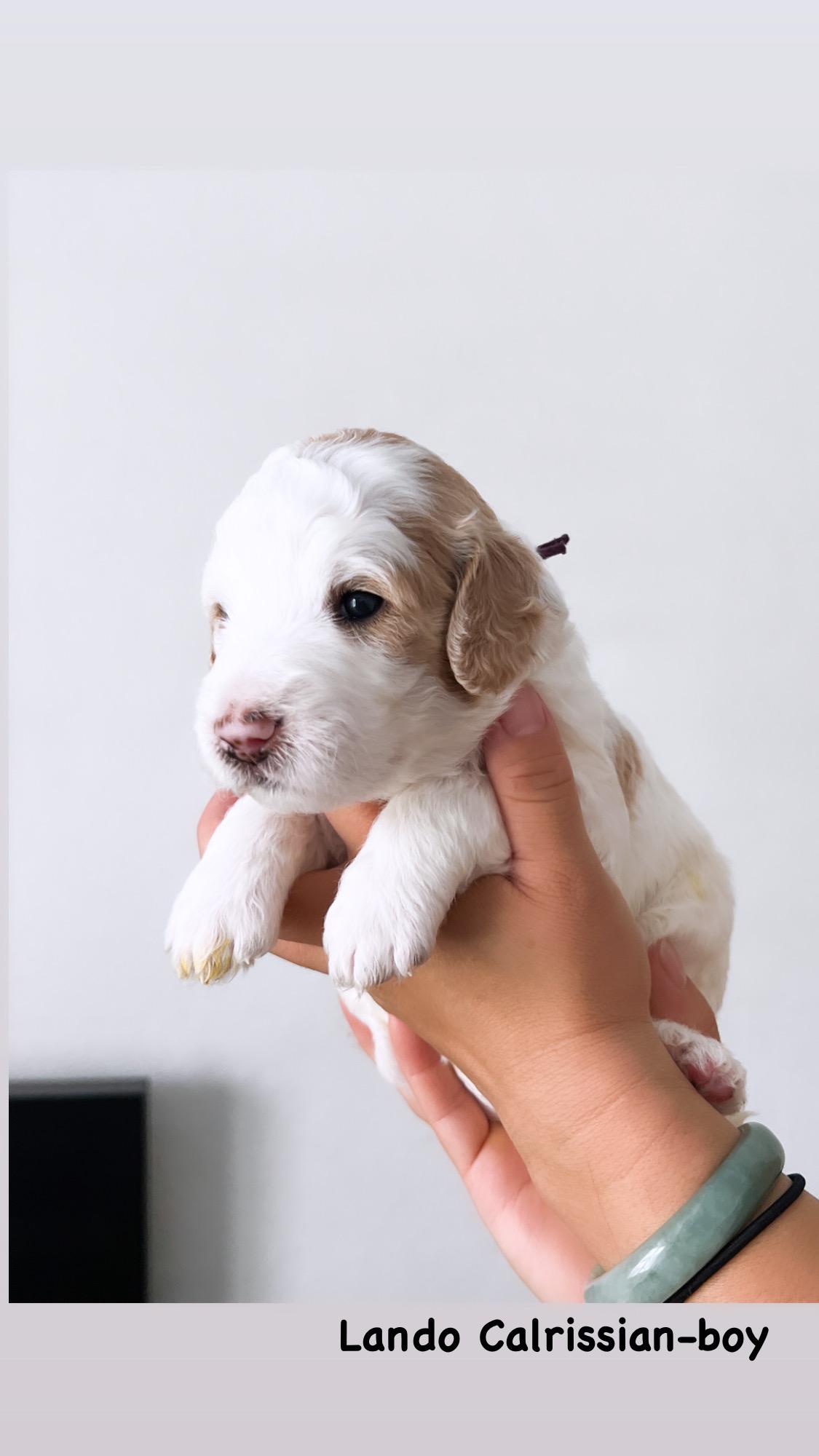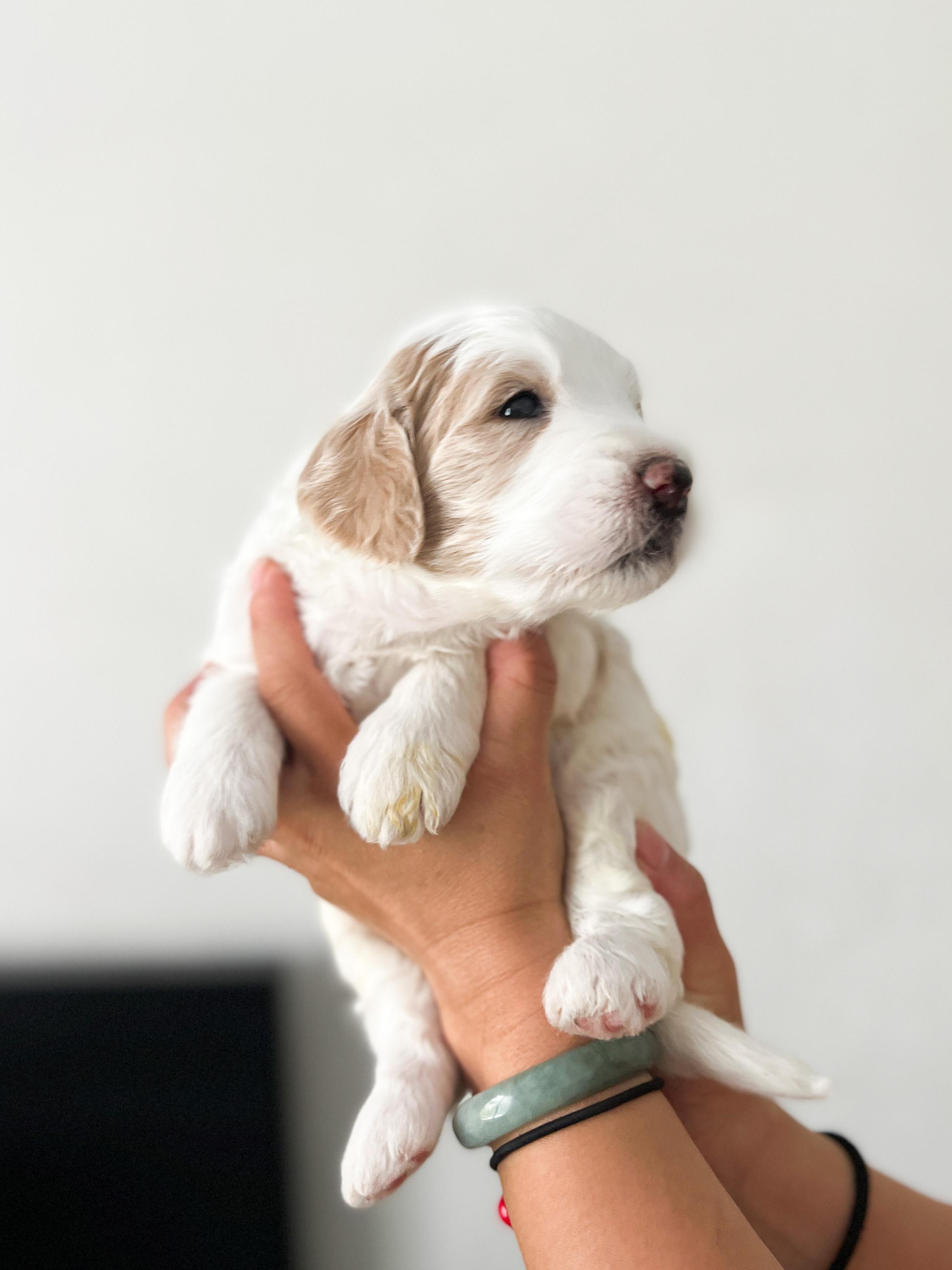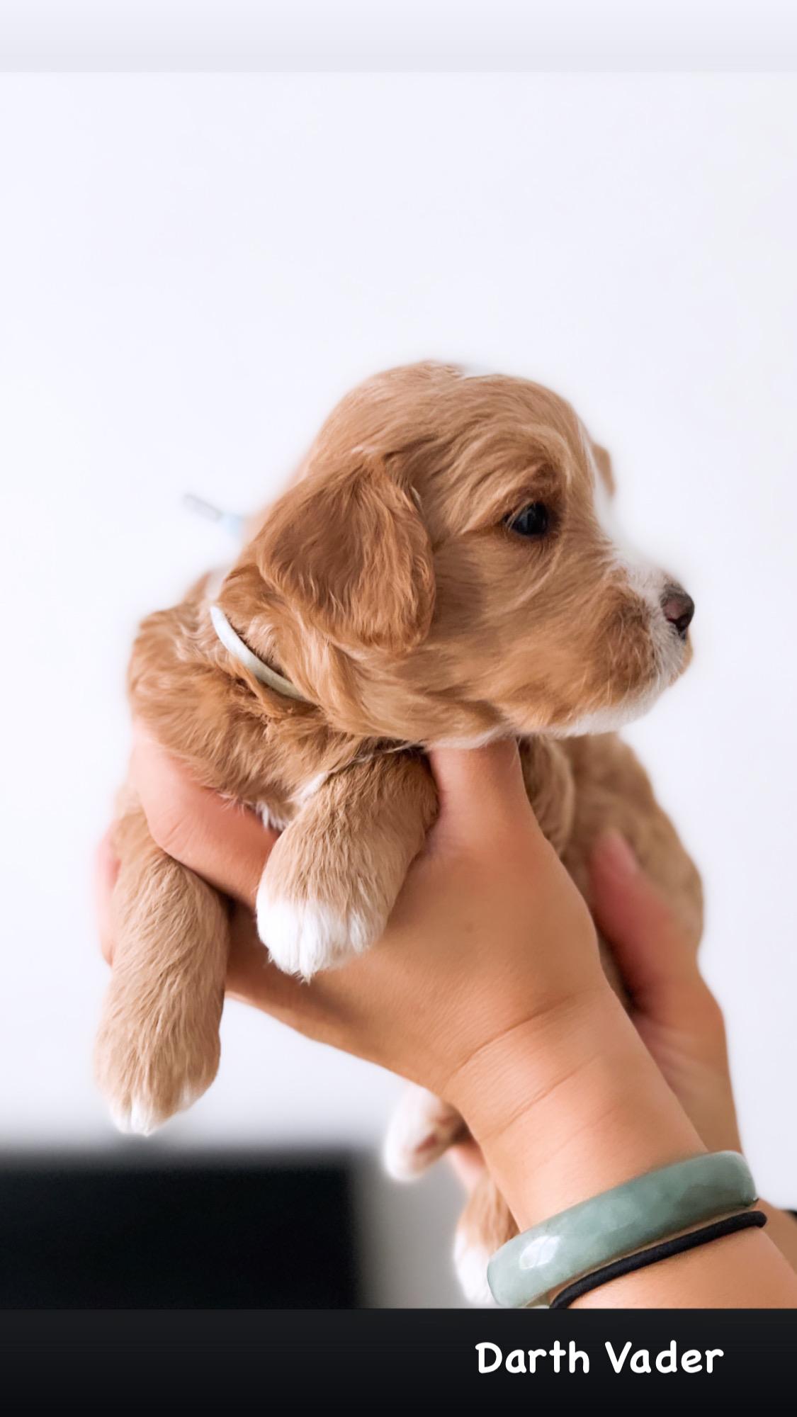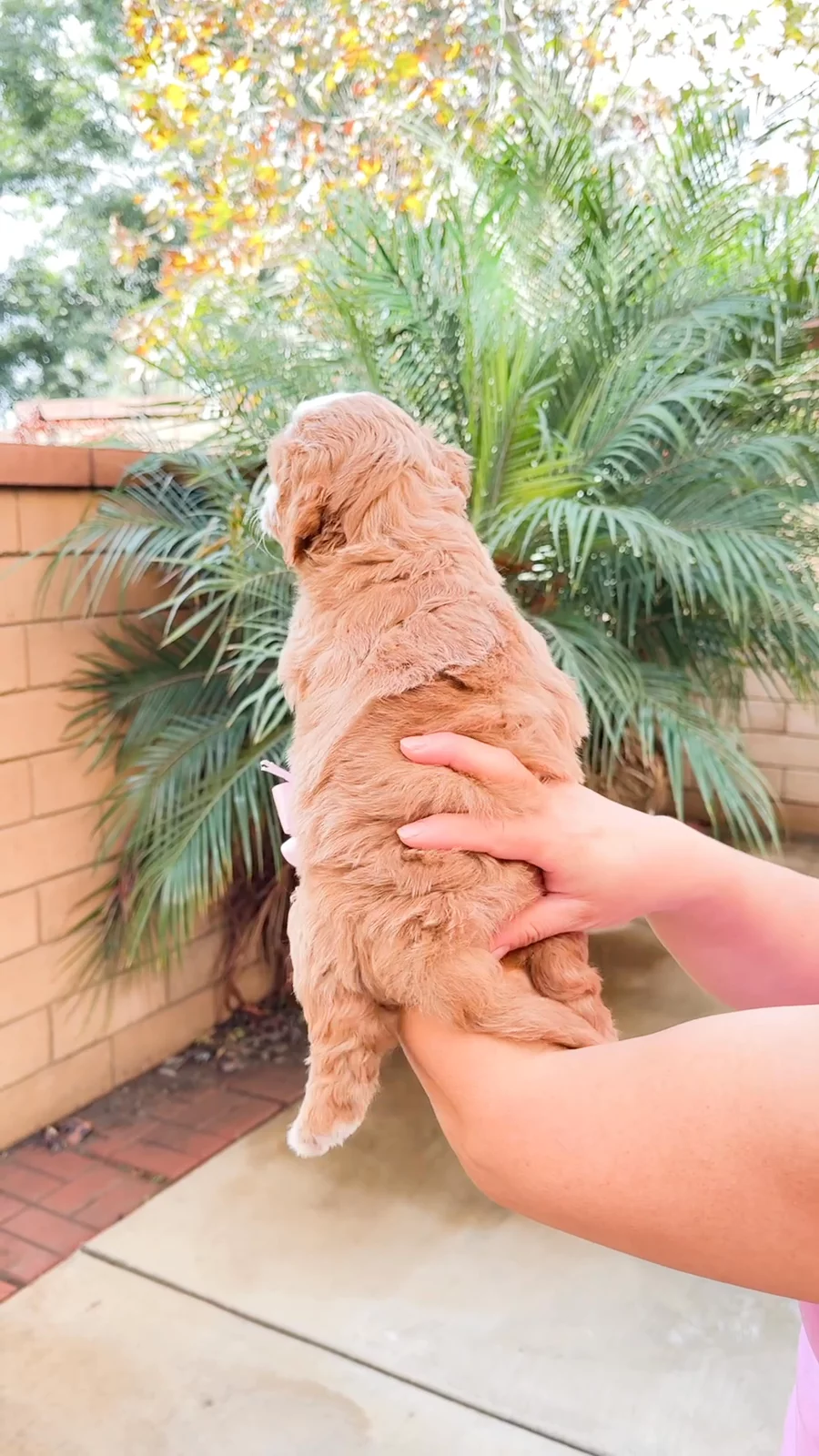 Peanut is one of our tiny little F1B Goldendoodle studs, we just love his colors and markings, little but brave full of energy, happy and playful.