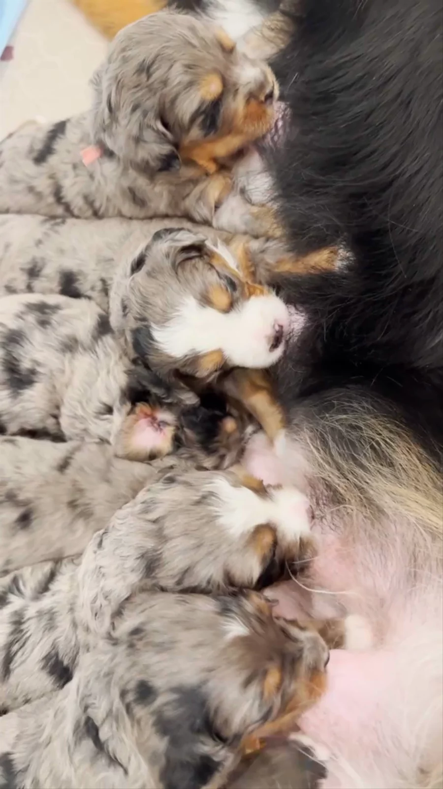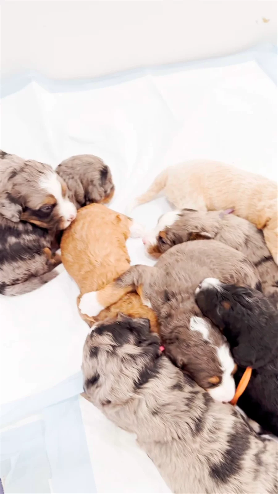 Sunday & Charlie’s two-week-old Bernedoodles.