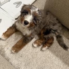 Isabelle is our future Bernedoodle mom with unique beautiful coloration looking to get some Sable Tri-colored babies. She is DNA tested and clear on all disease. OFA pending as she is not yet two years old.