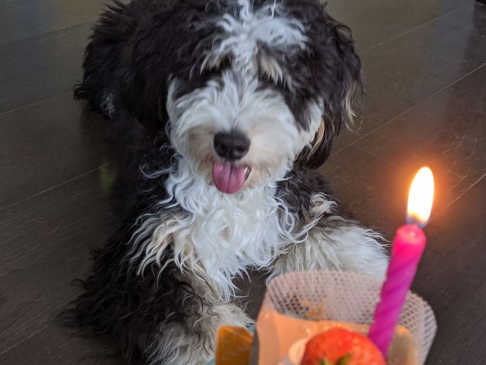 Sunday is a female Bernedoodle. Carefully selected as a great representative of her breed, Sophie decided to make her part of their program. Sophie has passed Good Dog’s screening process, which involved a review of their breeding practices, environment, and the mental and physical health of their dogs.