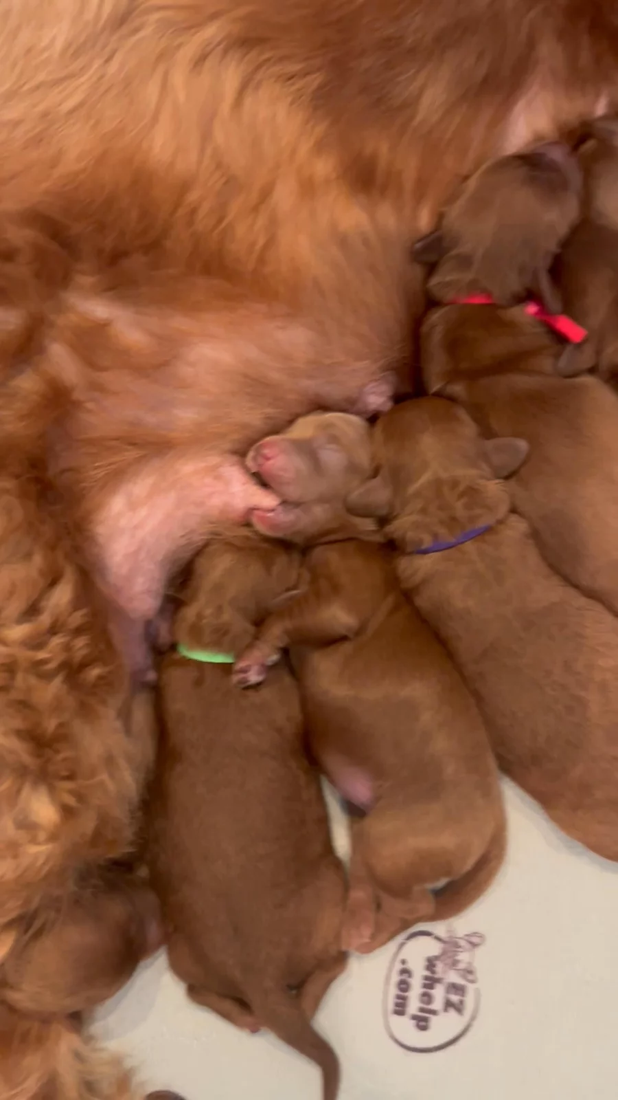 Stella and her puppies are doing amazing! They were just born on 8/6. I could just sit here and watch them sleep all day. Adorable!