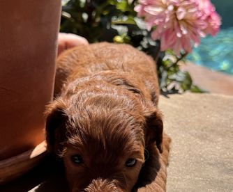 Micro F1B Dark Red Micro Goldendooodle - Boy 2