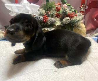 Jaylynn Renee is High spirited. Loves to run and play. Gets along with other dogs and loves to play with children. Very good natured. She is AKC Registered Soft Wire-haired Dachshund.