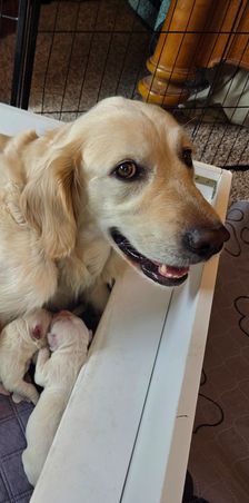 We were very selective in choosing our Goldens. They are health tested; DNA clear and have happy, healthy parents from reputable breeders. We give each puppy the love, attention and socialization they need to succeed with his/her new family! I also send weekly photos and encourage local visitation to begin bonding with your new puppy until he/she is ready to go home with you.