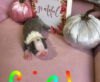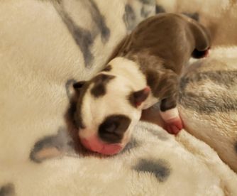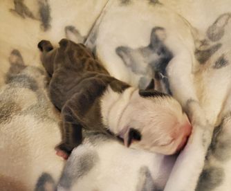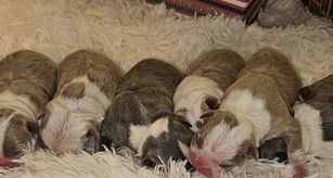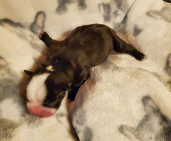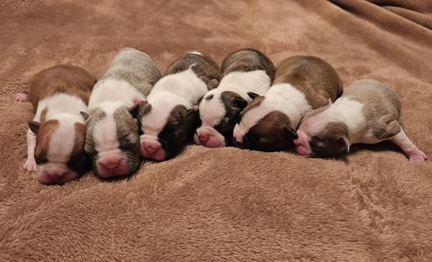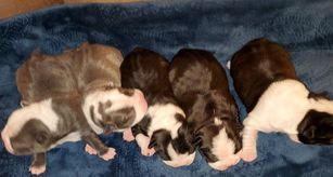 Our puppies include seal brindle and white, seal and white, brindle and white, black brindle and white, and black and white. Colors will vary depending on the parent dogs.