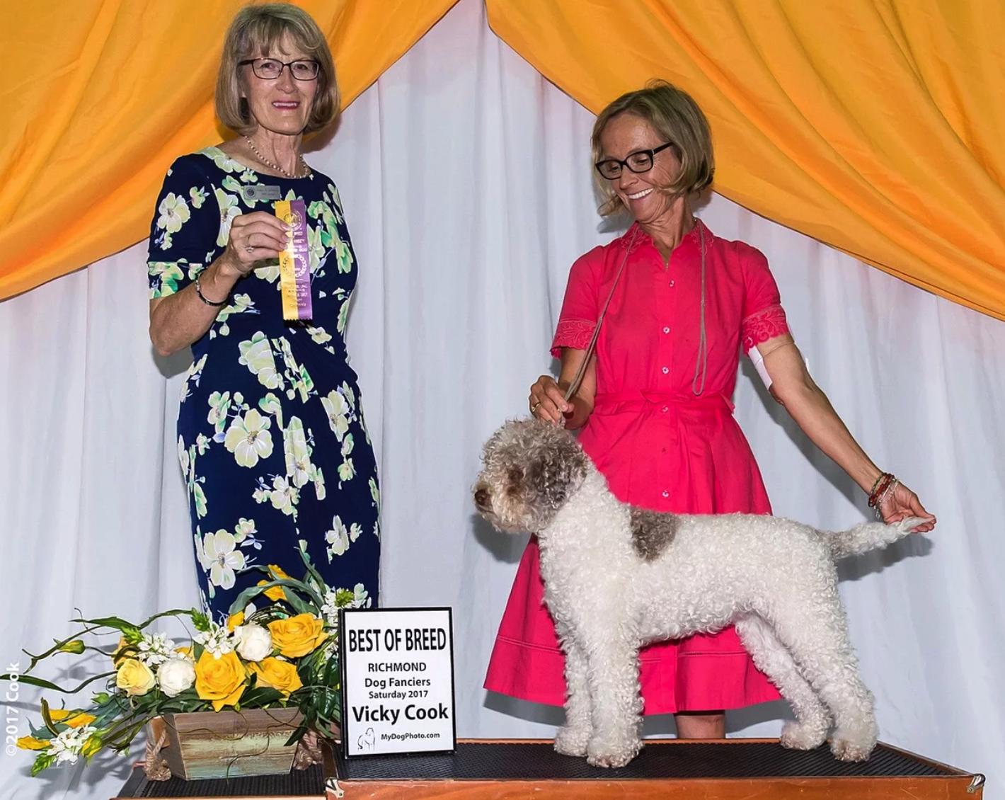 I had at the perfect Poodle as a girl growing up. My first breed as a young adult was a Lhasa Apso. I had a wonderful breeder who introduced me to the AKC dog shows and then mentored me with breeding my first litter of Lhasa Apsos. A knowledgable breeder, she taught me well and later I mentored with other breeders, learning different skill sets. I trained in Italy to know Lagotto.