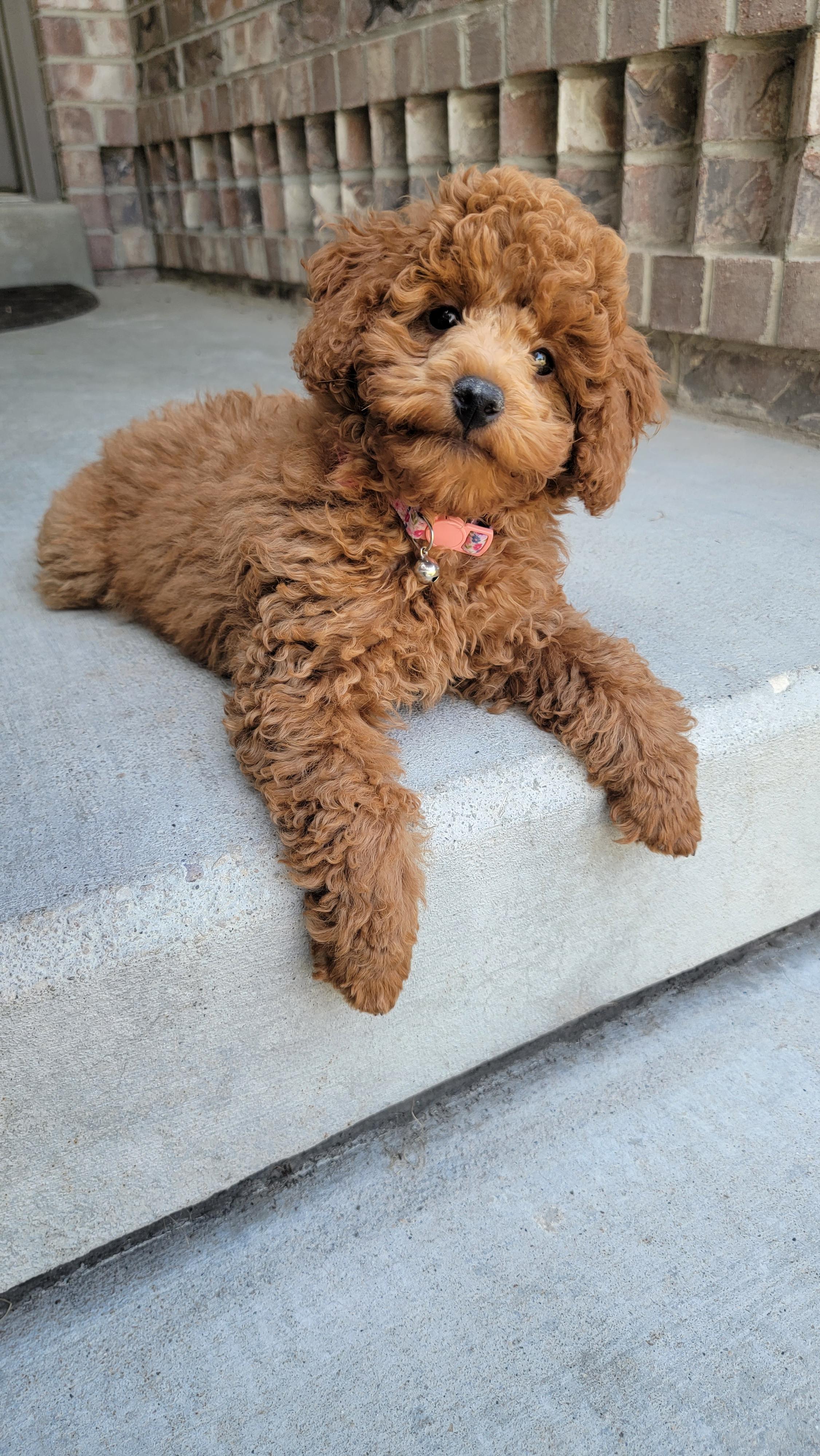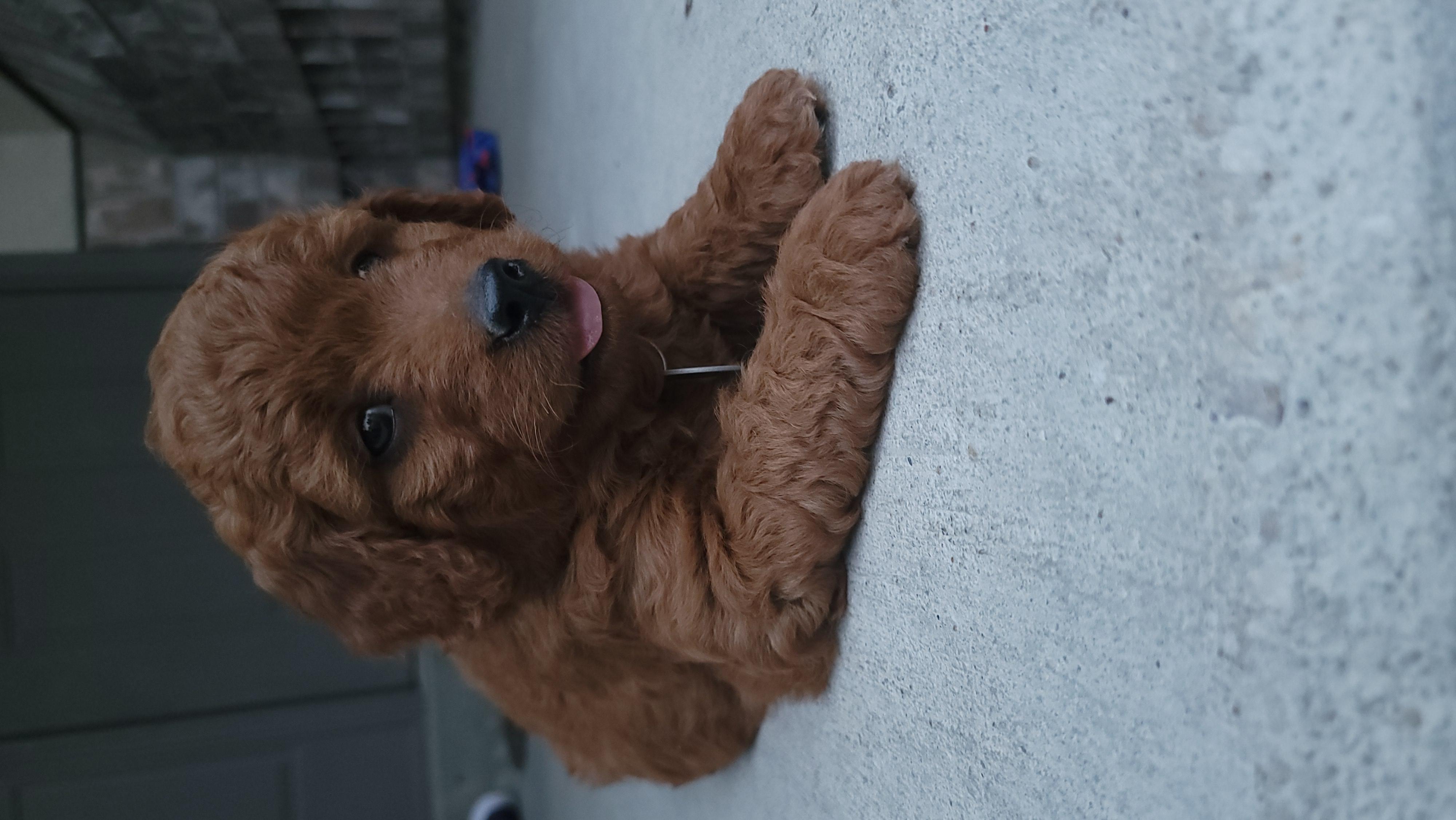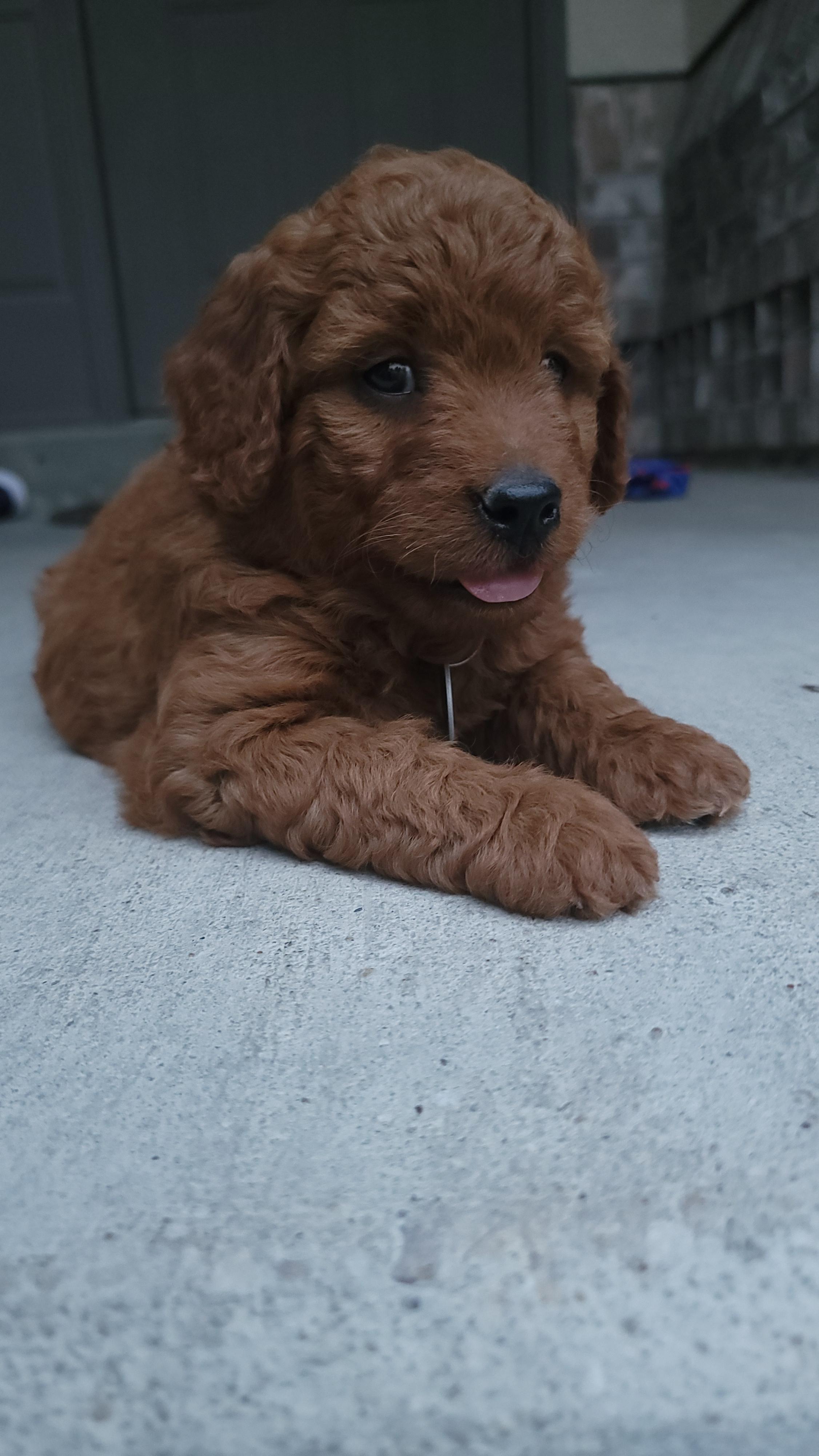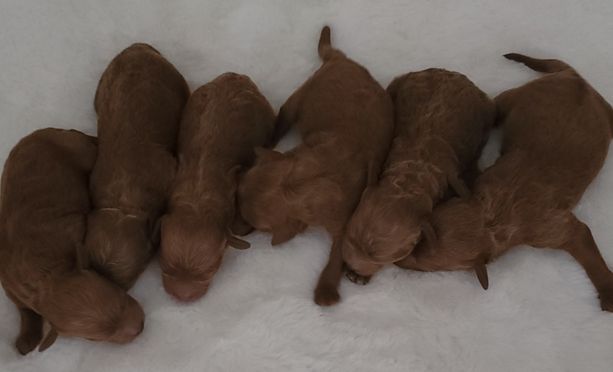 Our Poodle puppies include brown and red. Goldendoodle puppies include cream, apricot, and red. Colors will vary depending on the parent dogs.