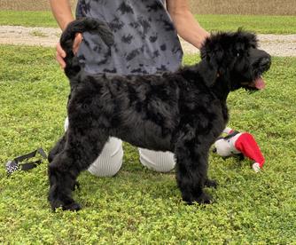 Luke is a male Black Russian Terrier about 2 years old. Carefully selected as a great representative of his breed, Elena decided to make him part of their program. Elena has passed Good Dog’s screening process, which involved a review of their breeding practices, environment, and the mental and physical health of their dogs.