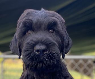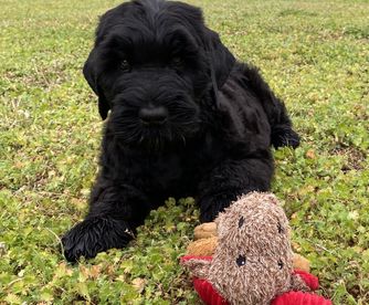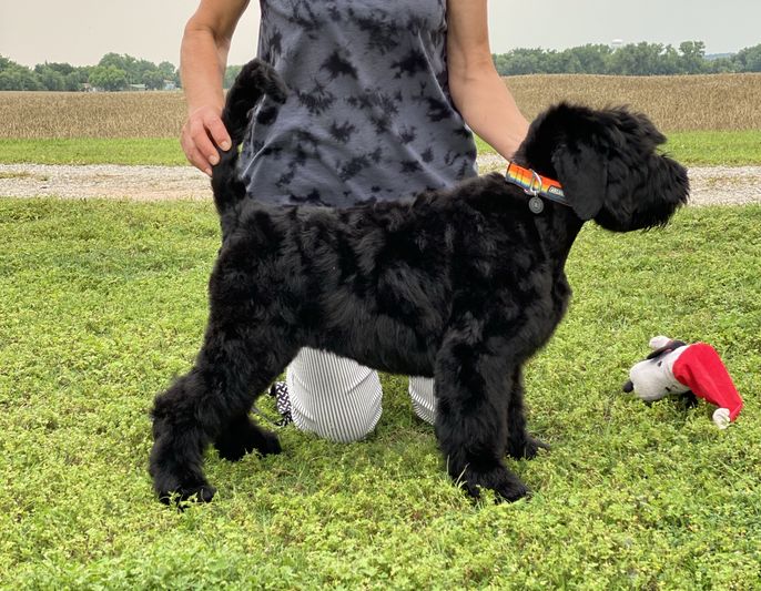 Shaman is a male Black Russian Terrier. Carefully selected as a great representative of his breed, Elena decided to make him part of their program. Elena has passed Good Dog’s screening process, which involved a review of their breeding practices, environment, and the mental and physical health of their dogs.