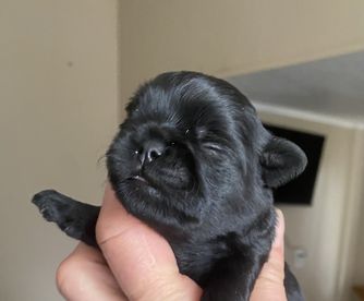 Affenpinscher puppies are black. Colors will vary depending on the parent dogs.