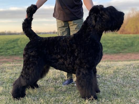 Johnnie is a male Black Russian Terrier. Carefully selected as a great representative of his breed, Elena decided to make him part of their program. Elena has passed Good Dog’s screening process, which involved a review of their breeding practices, environment, and the mental and physical health of their dogs.