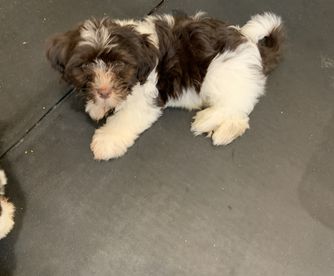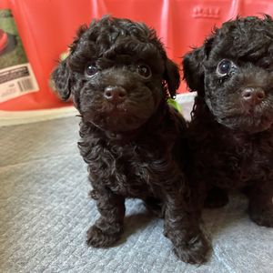 Our Havanese puppies include chocolate and black. Poodle puppies include black and red. Colors will vary depending on the parent dogs.