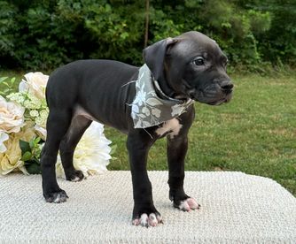 “Price includes all age appropriate vaccinations, embark DNA test, microchip, deworming, and vet check. UKC/ABKC registration is conditionally available for an additional fee. Ear cropping offered. Deposit holds your spot for selection of pups at 7 weeks old. Puppies are selected in pick order, higher picks means more selection to choose from. Deposits are transferrable to a future litter.”