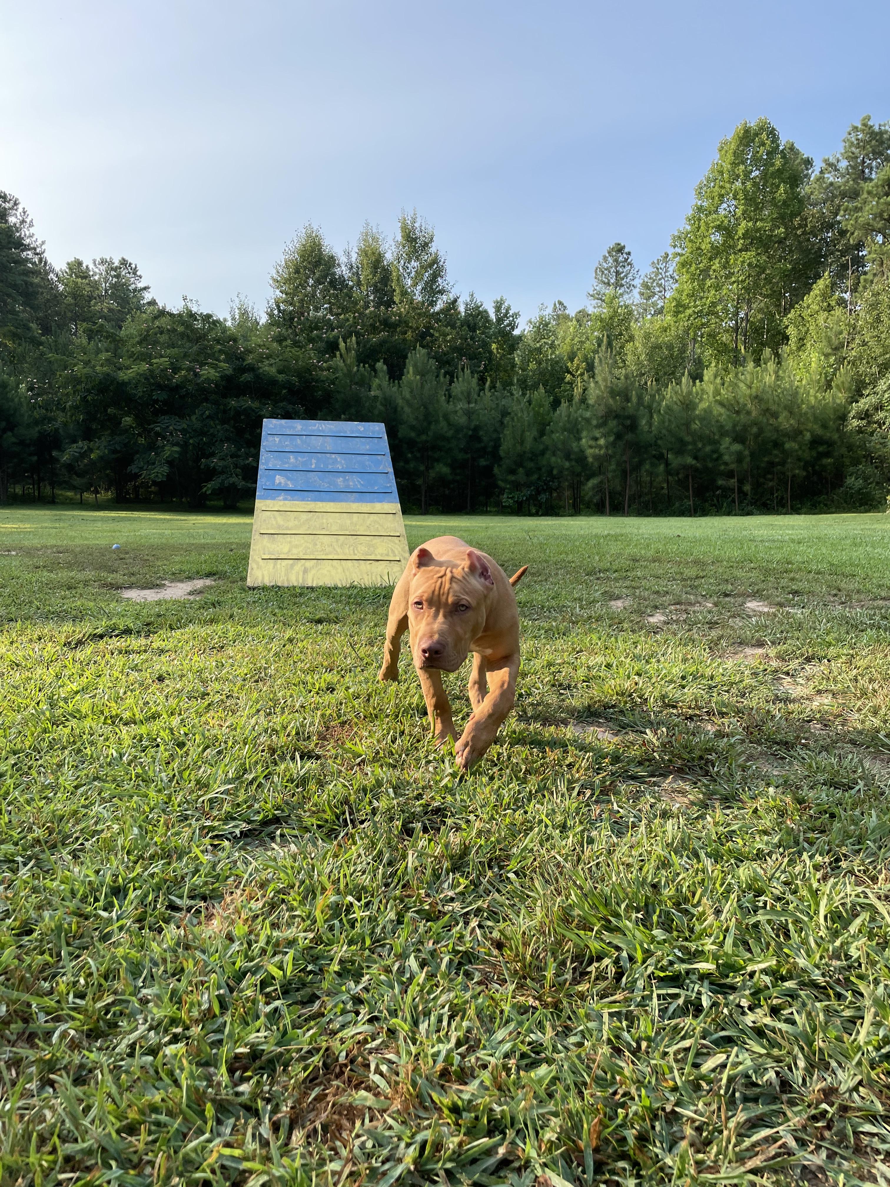 My husband and I fell in love with an 8mos pit mix named Tesla. She was the perfect dog for us but she had behavioral issues that we put large amounts of time and money into. After our experience with Tesla our next dog we looked to get from a quality breeder. After seeing how selective breeding and a quality start impacted a puppies life it inspired us to create exactly what we wanted in a dog.