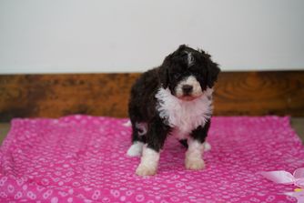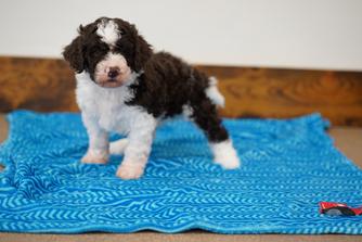 Tom-Mino Mini Me is a male Lagotto Romagnolo. Carefully selected as a great representative of his breed, Jacki decided to make him part of their program. Jacki has passed Good Dog’s screening process, which involved a review of their breeding practices, environment, and the mental and physical health of their dogs.
