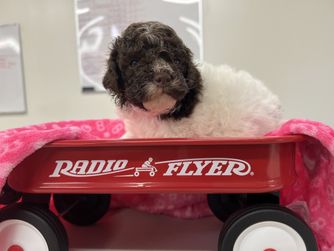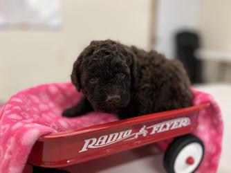 Vogue is a cherished breeding female with 25 years of lovingly selective, health-focused lineage. While her brown and tan curly coat makes her as cute as a button, it's her temperament that truly shines! She's irresistibly sweet, incredibly friendly, and fills every room with warmth and joy. Fully health tested and up to date on preventive care, Vogue truly embodies the gentle, cuddly heart of the Lagotto with a calm, confident presence. A wonderful foundation dog for breeders, like us, who treasure health, temperament and breed integrity.