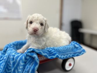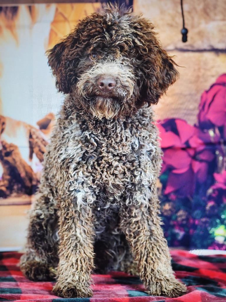Benji is a stunning male with a pedigree that speaks to his exceptional quality. As an import, he exemplifies the best of the Lagotto Romagnolo breed - sweet, affectionate, and incredibly intelligent. His kind soul and charming personality truly make him stand out. With his impressive lineage and remarkable temperament, Benji is the ideal sire to produce puppies that embody the true spirit of the Lagotto. Fully health tested with excellent results Hips, elbows, eyes, patella and dentation all excellent not a carrier of JE, LSD, PRA, NAD, or HUU Tested for all 150 known canine genetics markers and is free from all.