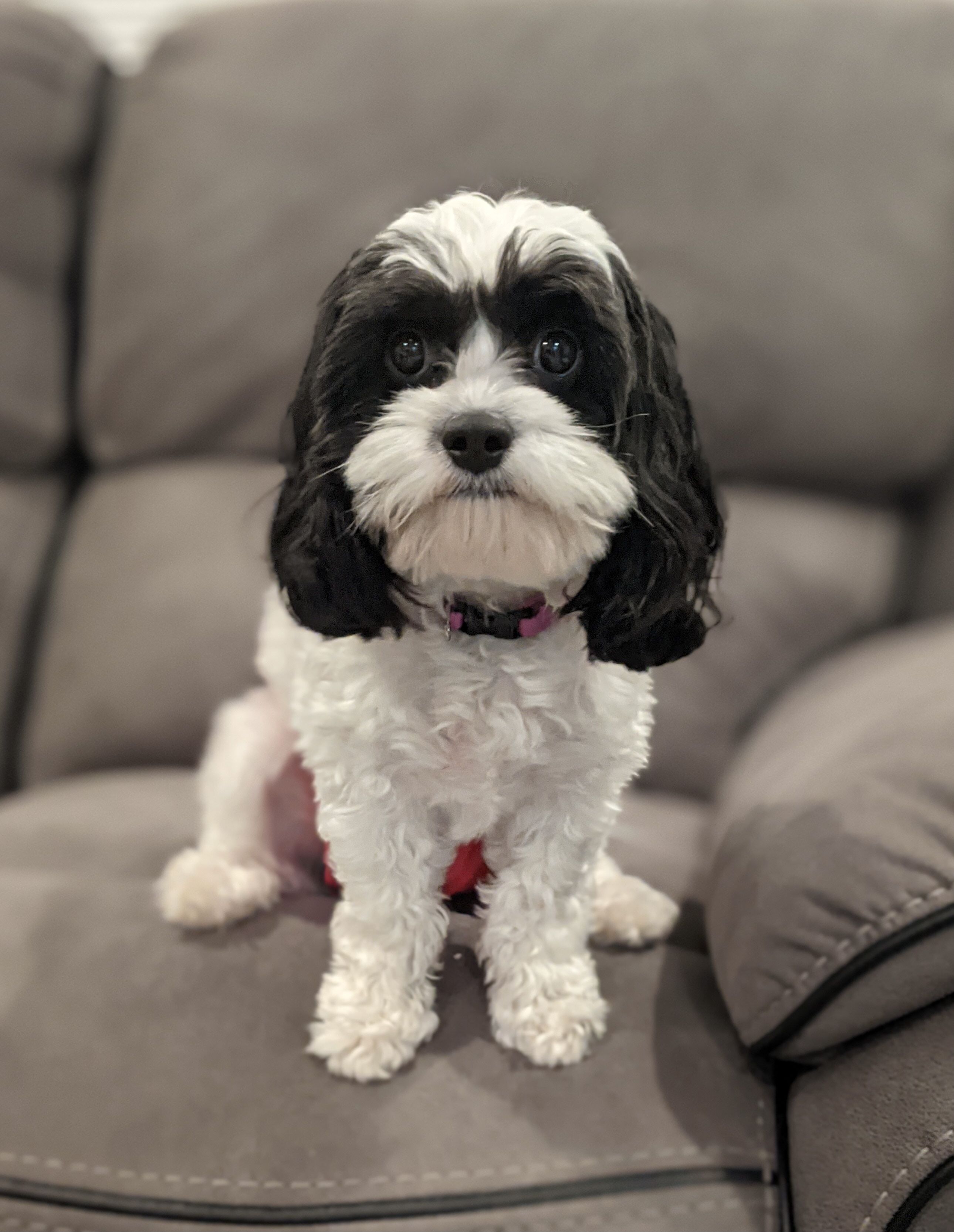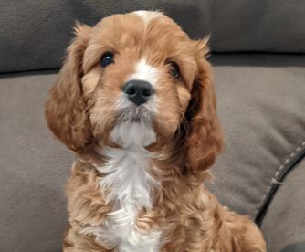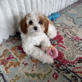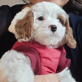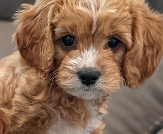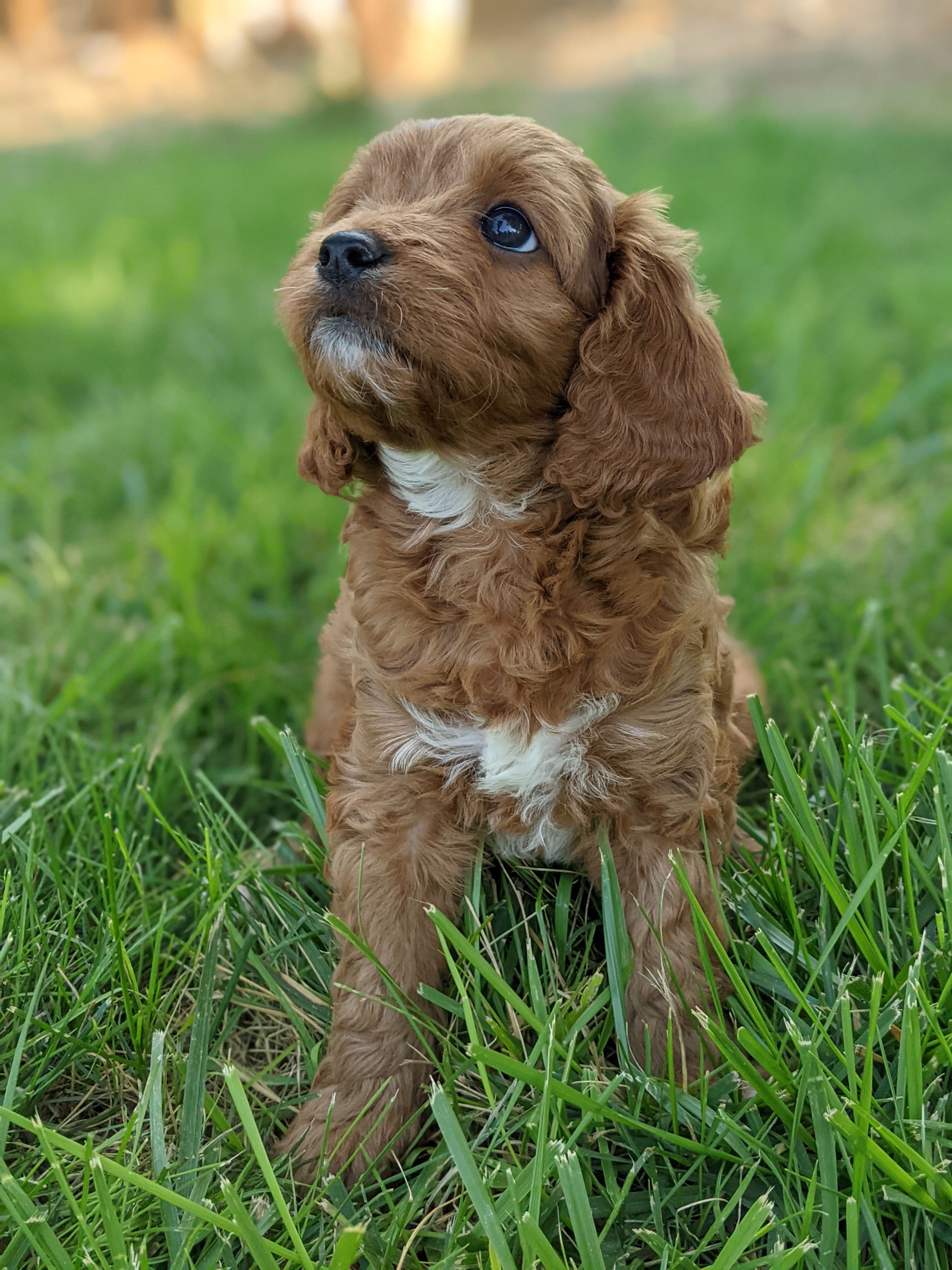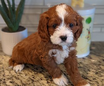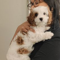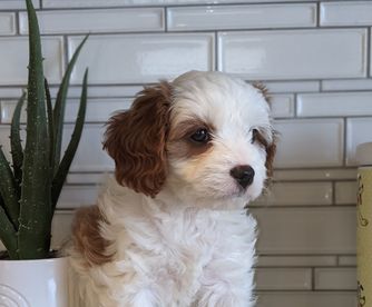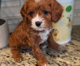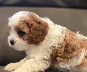Our Cavalier King Charles Spaniel puppies include blenheim, ruby, black and tan, and tri-color. Cavapoo puppies include white, red, tri-color, cream, brown, blenheim, black and tan, black and white, black, and apricot. Colors will vary depending on the parent dogs.