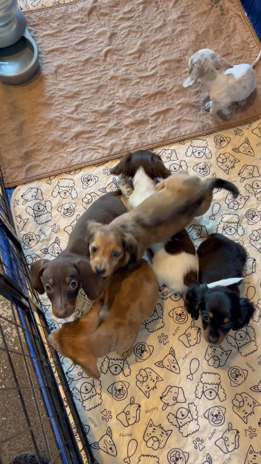 Our puppies include piebald, red, chocolate, fawn (isabella) and cream, blue and cream, and dapple. Colors will vary depending on the parent dogs.
