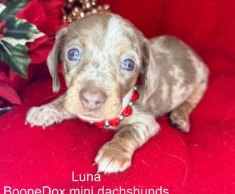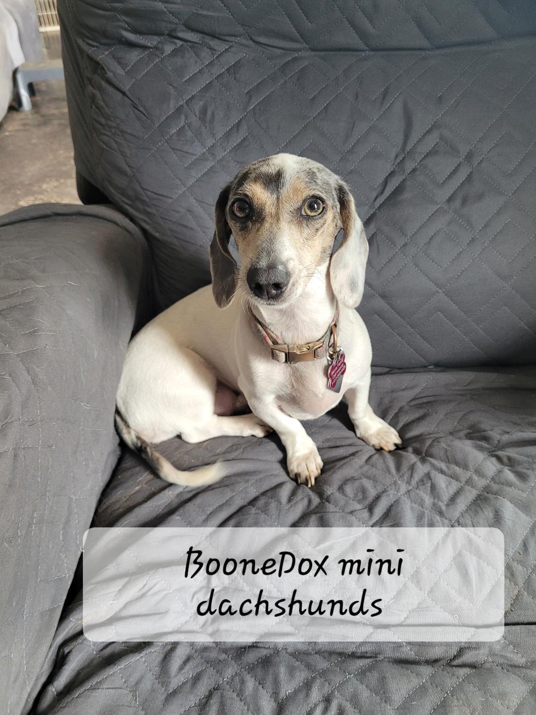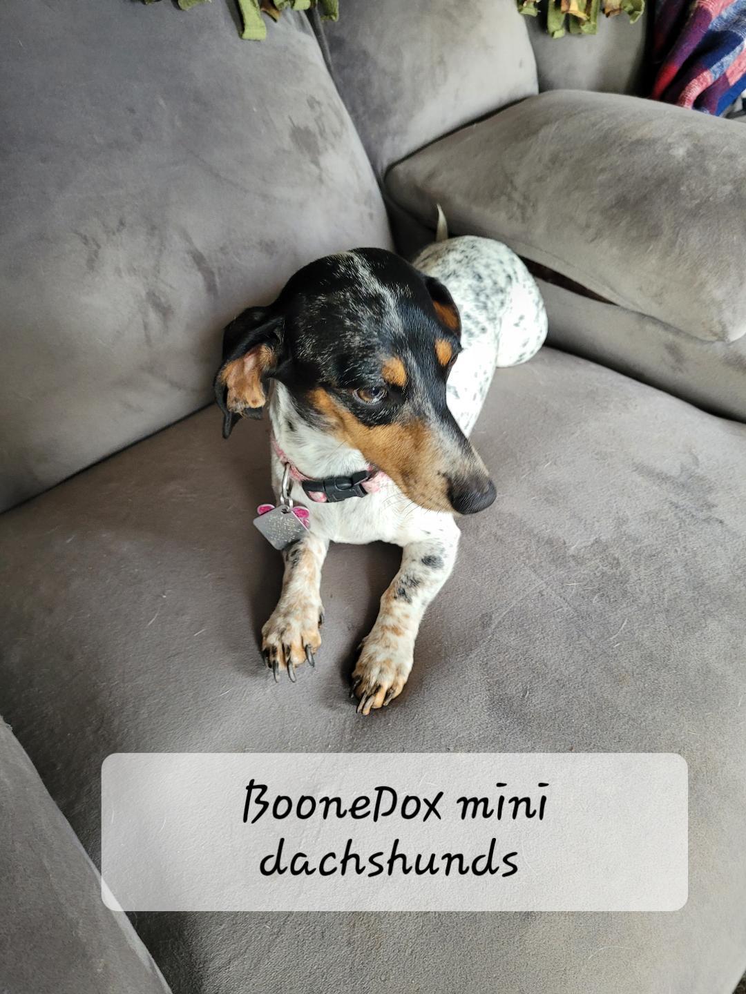 BooneDox Mini Doxies is an outstanding breeder, and I am incredibly grateful to have found them. Terry was very quick to respond with all the information I needed and maintained a strong sense of open communication throughout the entire process. I received plenty of amazing pictures and videos of my puppy, which made the experience even more special. The pick-up process was smooth, and Terry and her family were extremely inviting, providing wonderful hospitality. I would absolutely recommend to anyone wishing to adopt a quality furry friend!