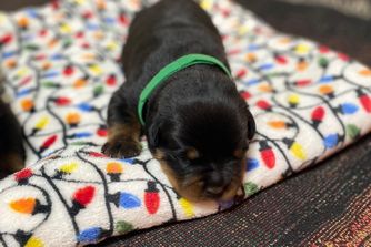 Our puppies are black and mahogany. Colors will vary depending on the parent dogs.