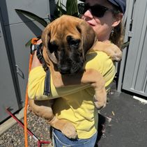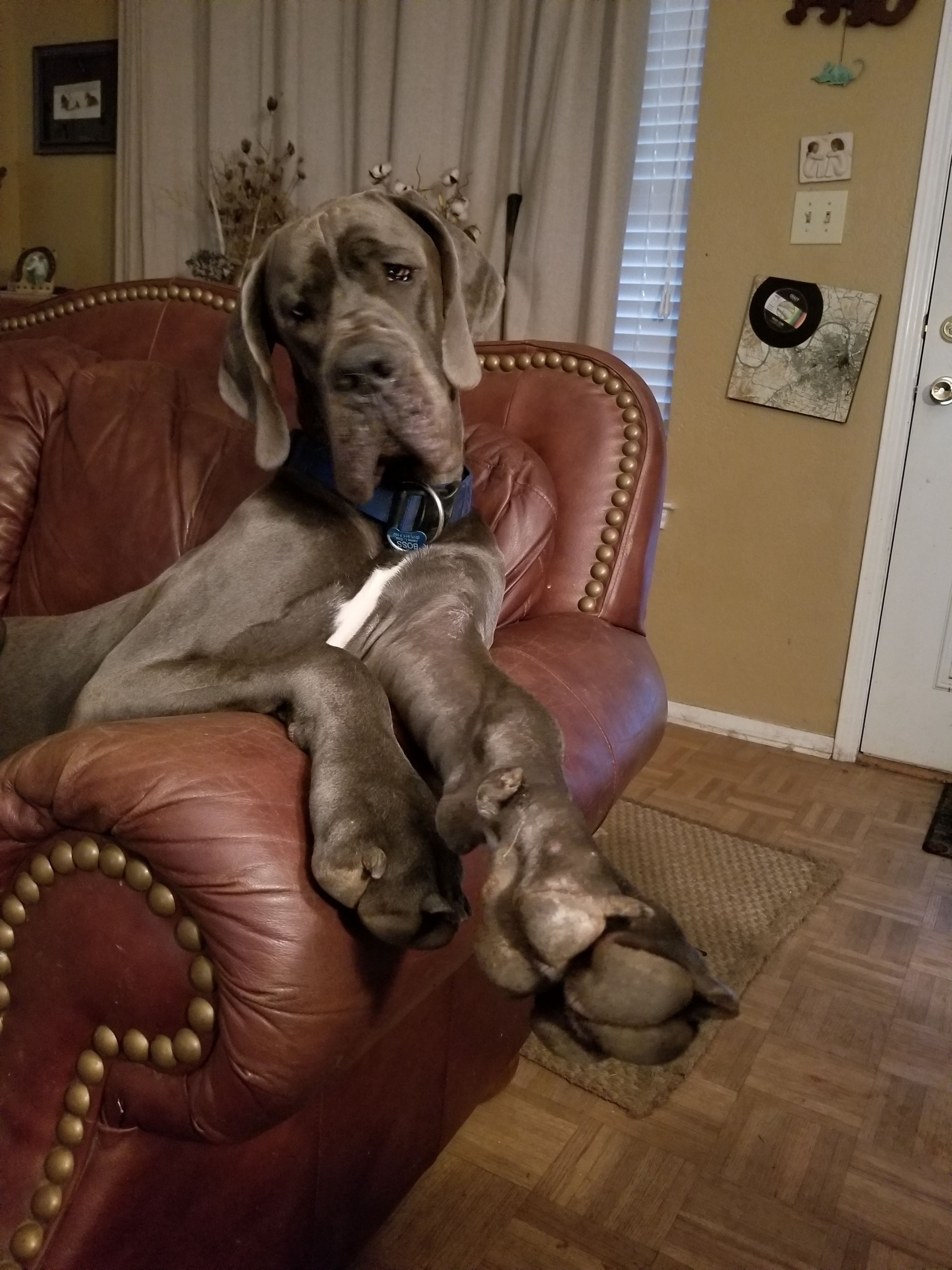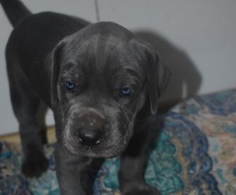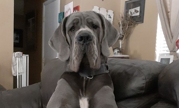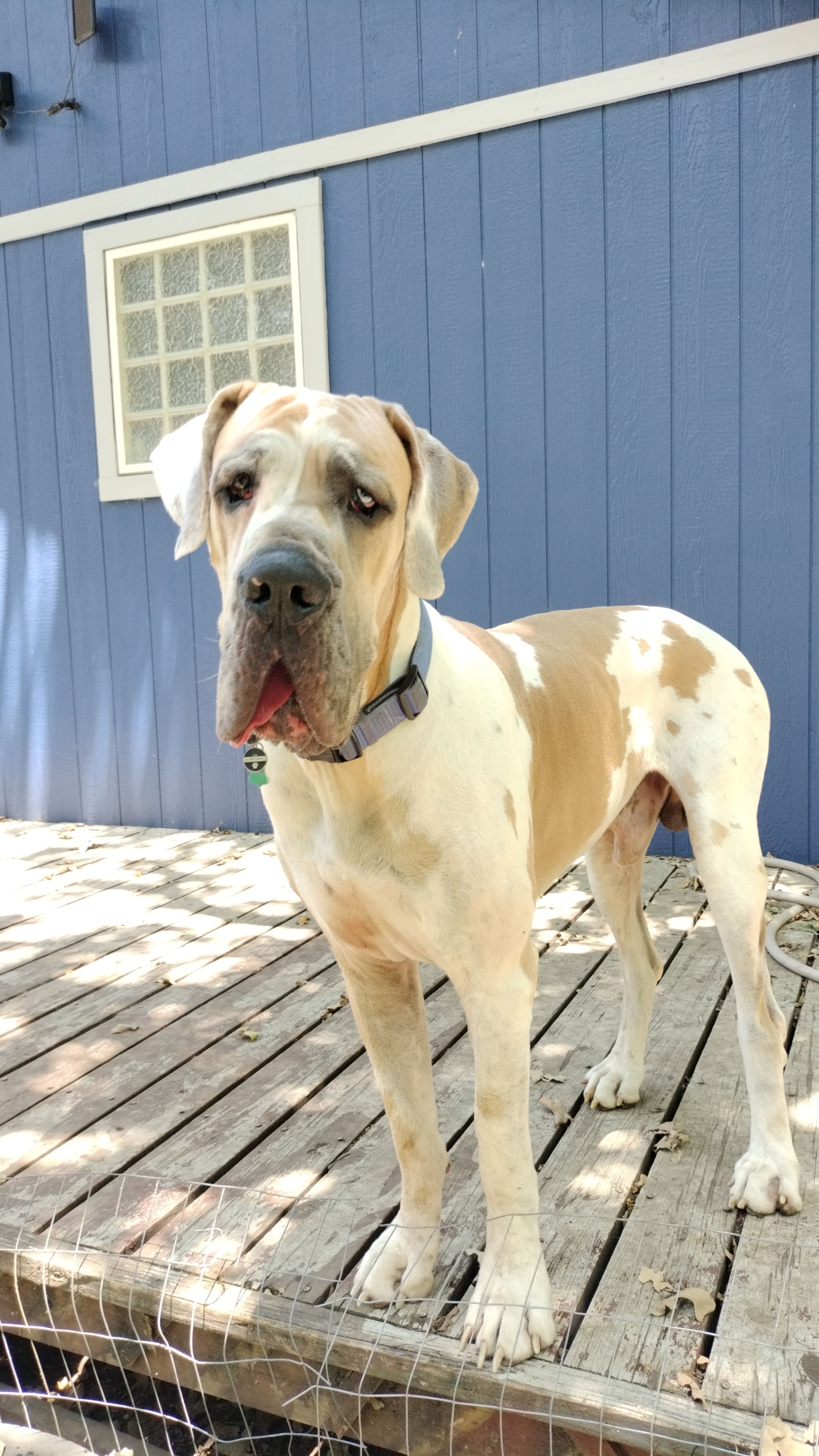 Harley Blue is Ms. Happier than Happy!!! She wants everyone to LOVE her and give her kisses while she wags her happy tail. She is 32" tall, 155 lbs. I raised her from my breeding program.