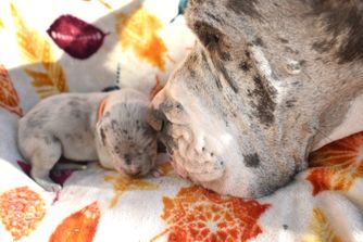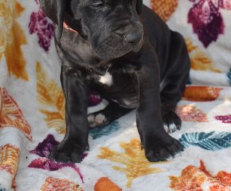 Our puppies include fawn, blue, harlequin, merle, and black. Colors will vary depending on the parent dogs.