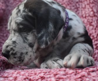 I'm Jamie C., the breeder behind Texas Blue Danes located in Alvarado, TX. Our focus is on breeding AKC Standard, healthy & happy puppies that bring as much love to their families as our dogs do for us. We are hands-on with our puppies & give plenty of unconditional love & attention! The puppies are raised indoors in their personal puppy room.