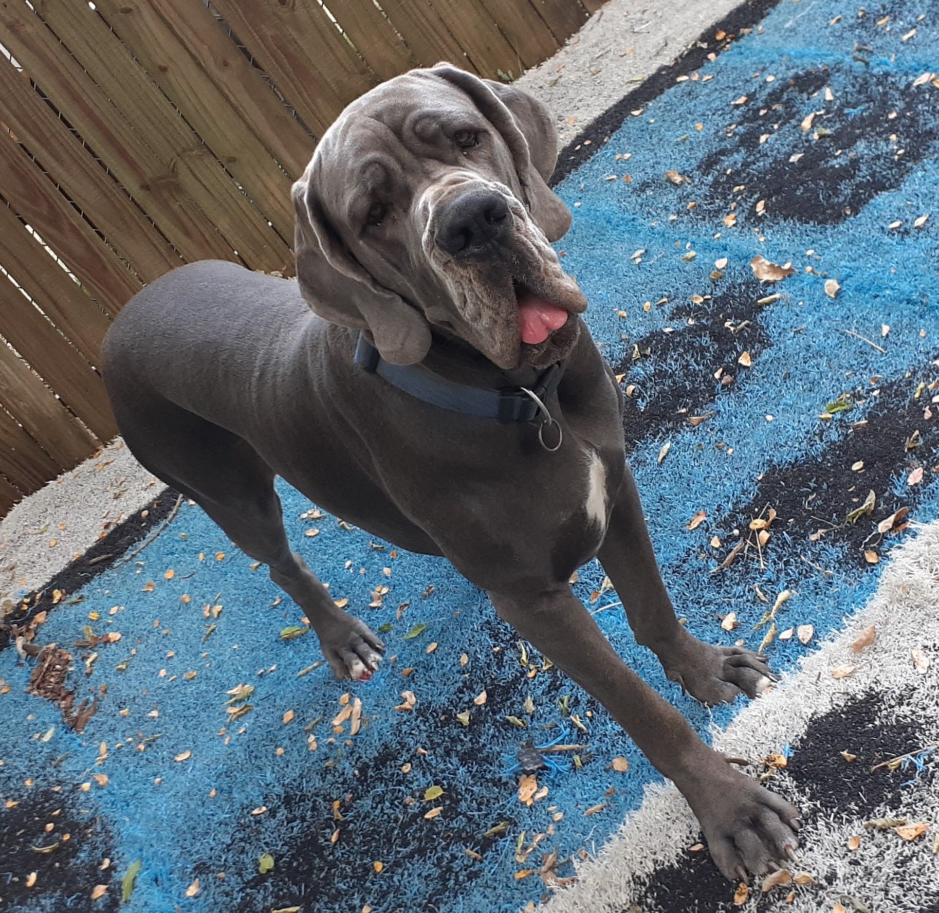 Tipton is a male Great Dane. Carefully selected as a great representative of his breed, Jamie decided to make him part of their program. Jamie has passed Good Dog’s screening process, which involved a review of their breeding practices, environment, and the mental and physical health of their dogs.