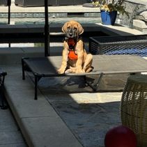 CJ is my "heart" dog. I put a deposit down for her 2 years before she was born. I had female pick of the litter. Couldn't have picked a better puppy. She had 1 litter then spayed to be my service dog. 5 of her 9 puppies were to sent to families to be service dogs. To carry on this bloodline, I have used her brother for several litters. I am also using her son that lives locally as a stud.