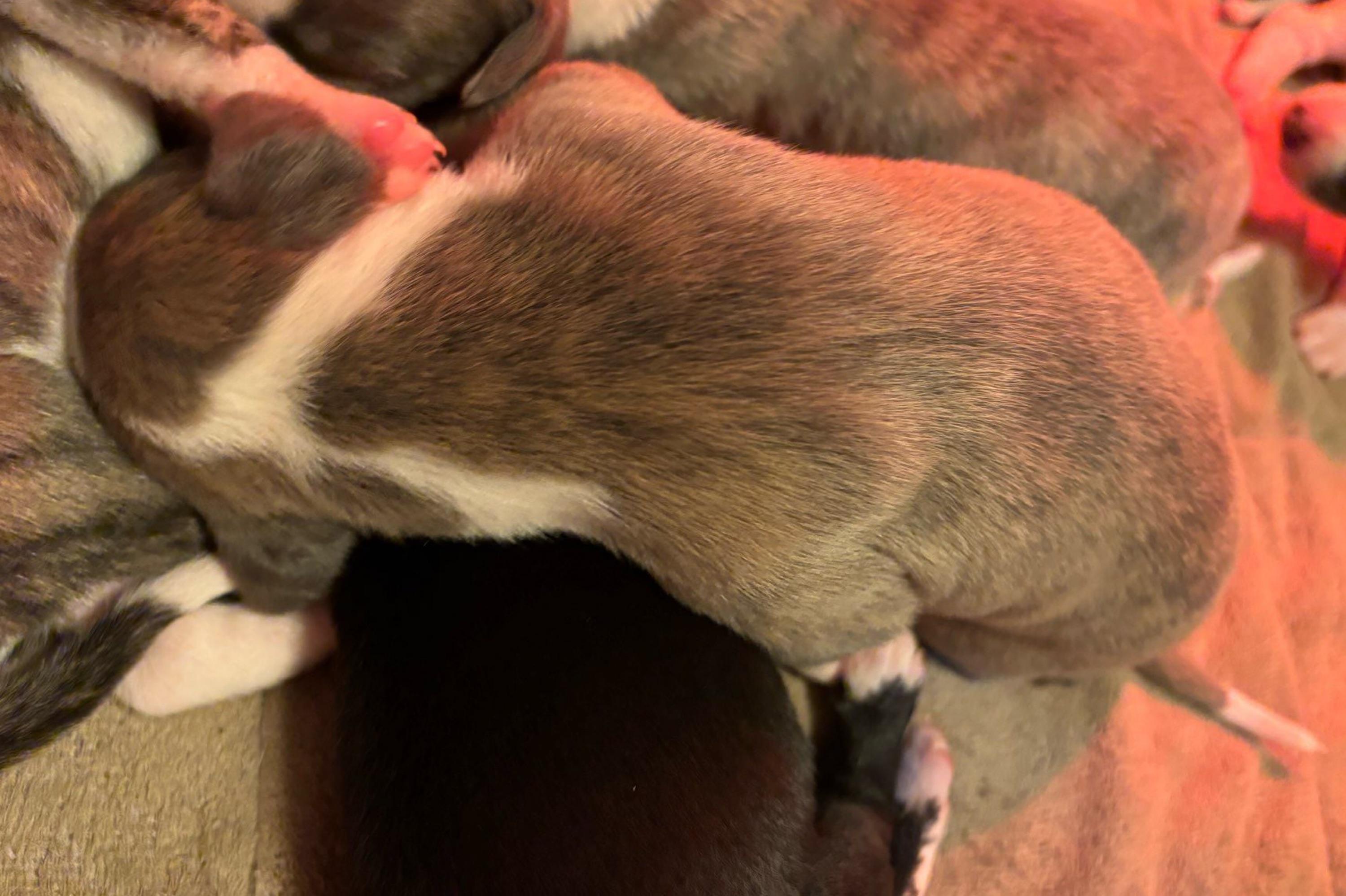 Our puppies include black brindle, blue, white and red brindle, fawn brindle, red brindle, blue brindle, and black. Colors will vary depending on the parent dogs.